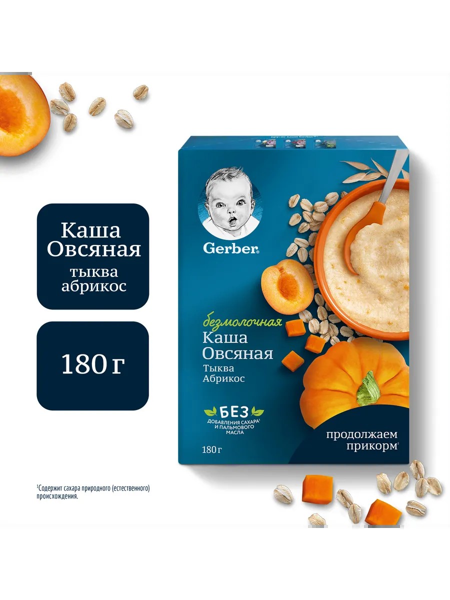 GERBER. Dairy-Free Oatmeal with Pumpkin and Apricot for Starting Weaning, with Bifidobacteria BL, from 5 months. 180g. Gerber knows that introducing solid foods is a special occasion for you and your baby. You want your baby to experience only the best. And so do we! That's why Gerber cereals contain only natural ingredients and nothing unnecessary. We build long-term partnerships with farmers and raw material suppliers to ensure the highest quality fruits and grains. We add iron to Gerber cereals, as this element is essential for preventing iron deficiency and for full physical and mental development.