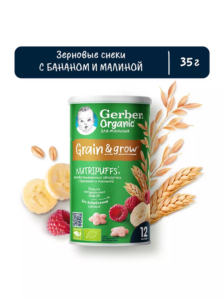 Снеки Gerber звездочки-банан-малина с 12 месяцев 35 г