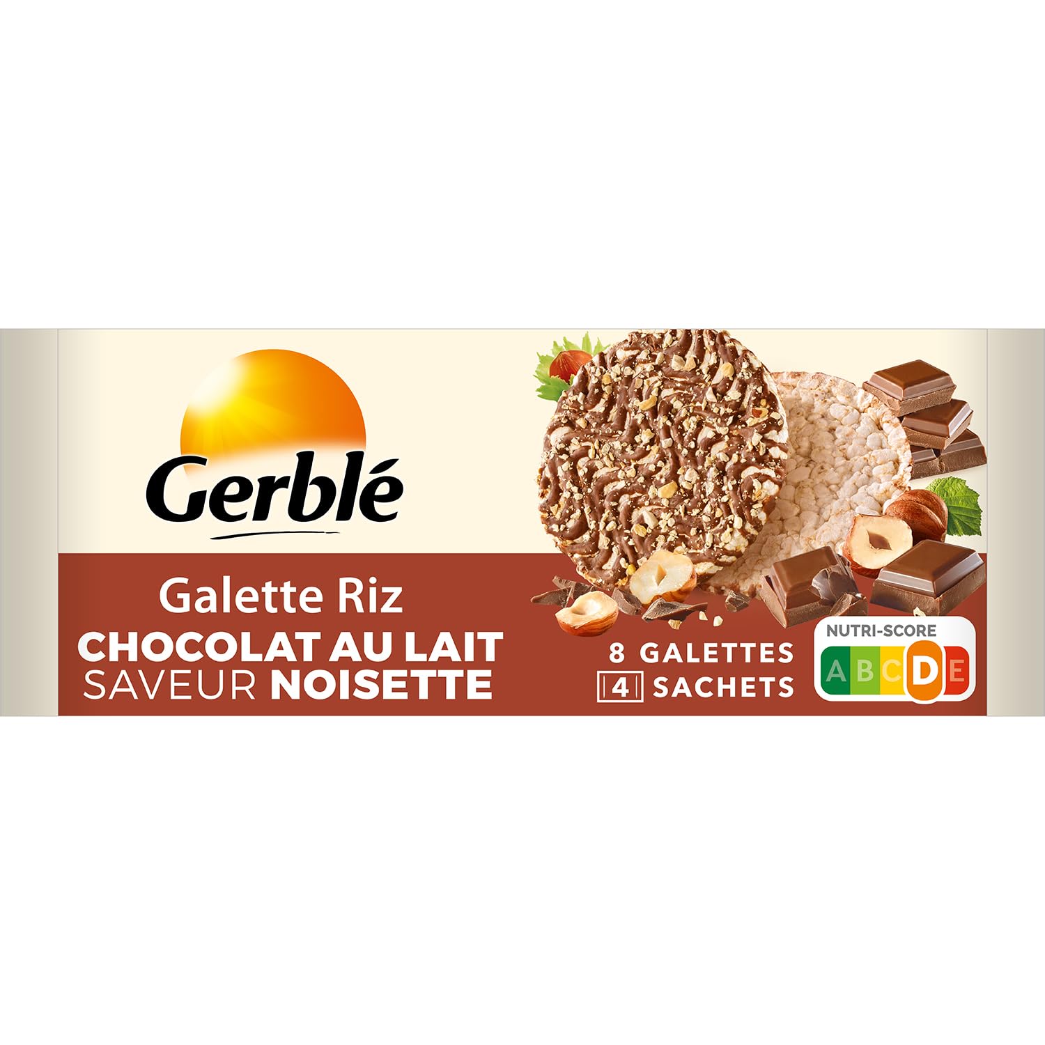 For 90 years, Gerblé has used all its expertise to offer you snacks that combine pleasure and nutrition. Gerblé offers a wide range of savory, sweet, and appetizer rice cakes to delight everyone. Feeling a little peckish during the day? Or craving chocolate? Indulge in our Gerblé milk chocolate hazelnut rice cakes. Ideal for a snack, these rice cakes will tantalize your taste buds. One pack contains 4 pouches of 2 tasty and crunchy rice cakes, convenient to take with you everywhere! Treat yourself! To be consumed as part of a varied and balanced diet and a healthy lifestyle. Store away from heat and humidity. INGREDIENTS Rice 49.9 (wholegrain rice, rice), MILK chocolate 45.8 (sugar, cocoa butter, cocoa mass, skimmed MILK, MILK fat, emulsifier: SOY lecithins, natural vanilla flavoring), toasted corn germ, toasted HAZELNUTS 2.3 , natural flavoring. INSTRUCTIONS FOR USE Ready to eat, enjoy on its own or with a hot or cold beverage at any time of day. SAFETY WARNING Store in a cool, dry place. See moreGerblé Galette de Riz au Chocolat au Lait Saveur Noisette, 4 Sachets Individuels, 8 Galettes, 142 g, 210594 Noisette 142 g (Lot de 1)DESCRIPTION DU PRODUIT DESCRIPTION DU PRODUIT Depuis 90 ans, Gerblé emploie tout son savoir-faire pour vous proposer des encas alliant plaisir et nutrition. Gerblé vous propose une large gamme de galettes salées, sucrées, apéritives pour le plus grand plaisir de chacun. Une petite faim durant la journée ? Ou une petite envie de chocolat ? Craquez pour nos galettes de riz au chocolat au lait saveur noisettes Gerblé. Idéales pour un encas, ces galettes sauront ravir vos papilles. Un paquet contient 4 pochons de 2 galettes savoureuses et craquantes, pratiques à emporter partout avec vous ! Faites-vous plaisir ! A consommer dans le cadre d'une alimentation variée et équilibrée et d'un mode de vie sain. A conserver à l'abri de la chaleur et de l'humidité. INGRÉDIENTS Riz 49,9 (riz complet, riz), chocolat au LAIT 45,8 (sucre, beurre de cacao, pâte de cacao, LAIT écrémé, matière grasse de LAIT, émulsifiant : lécithines de SOJA, arôme naturel de vanille), germe de mais toasté, NOISETTES toastées 2,3 , arôme naturel. MODE D'EMPLOI Prêt à manger, à déguster tel quel ou en accompagnement d'une boisson chaude ou froide à n'importe quel moment de la journée. AVERTISSEMENT DE SÉCURITÉ A conserver dans un endroit frais et sec Voir plus