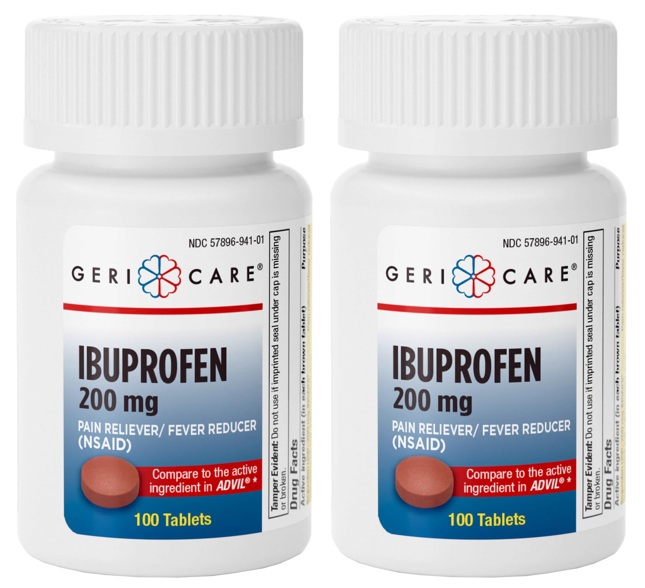 GeriCare Ibuprofen 200mg, Pain Reliever, Fever Reducer, Relieves Body Aches, 100 Count (Pack of 2)