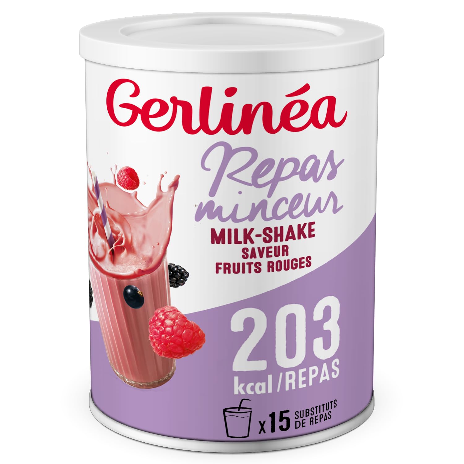 GERLINÉA – Boisson Milkshake Fruits Rouges – Substitut de Repas Minceur Riche en Protéines – 13 Vitamines 10 Minéraux – Faible en Graisses Saturées – 15 repas Facile à Préparer, 436g