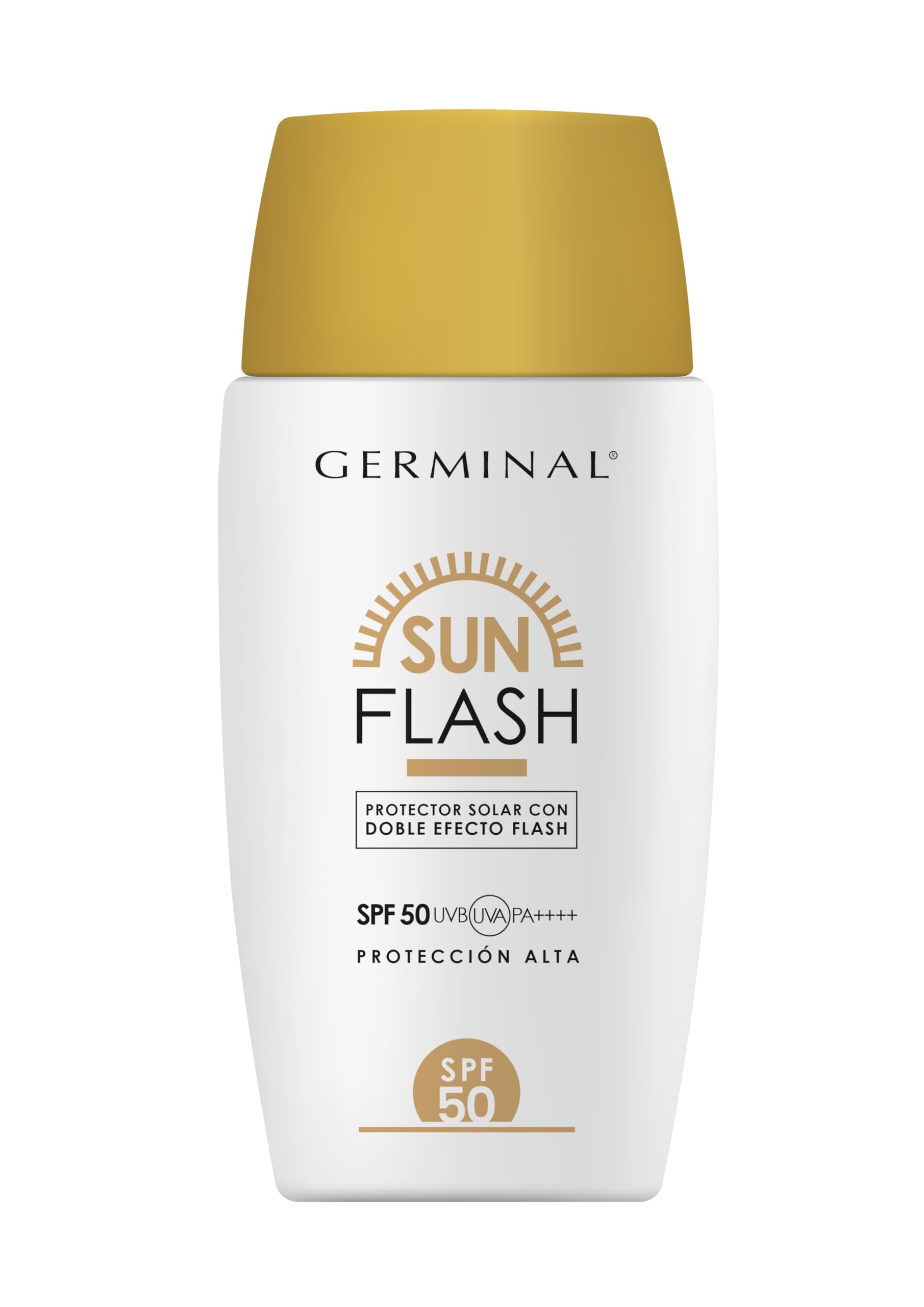 Germinal Sun Flash SPF 50 is a facial sunscreen that combines maximum sun protection with advanced cosmetic benefits. Designed for all skin types, this SPF 50 facial sunscreen protects against UVA and UVB rays, preventing damage such as photoaging and sunspots. Its formula includes chemical sun filters and natural extracts like Lithops pseudotruncatella for healthier-looking skin. This SPF 50 sunscreen not only protects but also improves the appearance of the skin thanks to the dual GERMINAL flash effect, which provides an immediate lifting effect for over 12 hours. Its formula, thanks to wheat protein and pullulan, instantly firms the skin. In addition, ingredients such as ginseng extract and witch hazel provide radiance, while yeast extract deeply hydrates, improving cellular oxygenation. GERMINAL's SPF50 PA facial sunscreen is perfectly suited to the needs of all skin types, offering a lightweight texture with a luminous finish that absorbs quickly. Its convenient 50ml bottle makes it ideal for taking with you anywhere, ensuring protected and cared-for skin at all times. Apply generously to the face, neck, and décolleté 30 minutes before sun exposure and reapply every two hours to maintain its effectiveness. With GERMINAL Sun Flash SPF50, you get much more than just sunscreen. It's a complete treatment that hydrates, firms, and illuminates – the ideal solution for those seeking a facial sunscreen that combines protection, beauty, and health. INGREDIENTS AQUA, C12-15 ALKYL BENZOATE, ISONONYL ISONANOATE, DIBUTYL ADIPATE, TRIHEPTANOIN, OCTOCRYLENE, METHYLENE BIS-BENZOTRYAZOYL TETRAMETHYLBUTYLPHENOL (nano), BIS-ETHYLHHHENOL EXYLOXYY. PHENOL METHOXYPHENYL TRIAZINE, ETHYLHEXYL TRIAZONE, BUTYL METHOXYDIBENZOYLMETHANE, PROPYLENE GLYCOL, PULLULAN, BESSWAX (CERA ALBA), CETEARYL ALCOHOL, SODIUM STEAROYL LACTYLATE, 1,2 - HEPTANE. DIOL, LITHOPS PSEUDOTRUNCATELLA CALLUS LYSATE, COCO-GLUCOSIDE, STEARALKONIUM HECTORITE, GLYCERIN, C20-22 ALKYL PHOSPHATE, DECYL GLUCOSIDE, C20-22 ALCOHOLS, HYDROXYACETOTO. PHENONE, HYDENE DROXYETHYL ACRYLATE SODIUM ACRYLOYLDIMETHYL TAURATE COPOLYMER, POTASSIUM CETYL PHOSPHATE, PARFUM, DIVINYLDIMETHICONE DIMETHICONE CROSSPOLYMER, HYDROLYZED WHEAT PROTEIN, PROPYLENTHYLDIMETHYLDE. E CARBONATE, Mica, titanium dioxide, PVP, DISODIUM EDTA, TIN OXIDE, PENTYLENE GLYCOL, SODIUM HYDROXIDE, IS VIRGINII ANA BARK LEAF TWIG EXTRACT, TOCOPHEROL, AMYL SALICYLATE, POTASSIUM SORBATE, SODIUM BENZOATE, PANAX GINSENG ROOT EXTRACT, TETRAMETHYL ACETYLOCTAHYDRONAPHTHALENES, CYAMOPSIS TETRAGONOLOBA (GUAR) GUM, PHYTIC ACID D, HELIANTHUS ANNUUS SEED OIL, VANILLA, CARVONE, YEAST EXTRACT, HYPERICUM PERFORATUM EXTRACT. SAFETY WARNING Avoid contact with eyes. See moreIngredients for healthy skin: With plant-based extracts such as Lithops pseudotruncatella and ginseng, this SPF 50 pro-vitamin D facial sunscreen improves skin tone and texture, providing a radiant, even, and vibrant appearance. Pullulan also acts as an anti-aging ally, instantly reducing the appearance of wrinkles. Moisturizing and firming SPF 50 facial sunscreen: GERMINAL facial sunscreen stands out for its ability to deeply hydrate the skin while increg its firmness. Ideal for all skin types, it offers a light texture and leaves a smooth, firmer, and more even feel on the face, neck, and décolleté. Maximum protection and complete care: GERMINAL Sun Flash SPF 50 offers full-spectrum facial sun protection thanks to its PA rating, guaranteeing maximum defense against UVA and UVB rays. Ideal for preventing the harmful effects of sun exposure, such as dark spots, sunburn, and premature aging, this is the essential facial sunscreen for your daily routine. GERMINAL's SPF 50 facial sunscreen with an immediate lifting effect and luminous finish not only protects but also improves the skin's appearance. It is formulated with advanced, very high sun protection technology (PA ) that combines chemical filters and plant-based active ingredients to provide complete coverage against UVA and UVB rays. GERMINAL Sun Flash SPF 50 is more than just a facial sunscreen: it hydrates, firms, and illuminates. It protects against UVA and UVB rays and provides an immediate lifting effect for over 12 hours.Germinal Sun Flash SPF50 Sunscreen 1 UnitDESCRIPTION DU PRODUIT DESCRIPTION DU PRODUIT Germinal Sun Flash SPF50 est une crème solaire pour le visage qui combine une protection solaire maximale avec des avantages cosmétiques avancés. Conçue pour tous les types de peau, cette crème solaire 50 pour le visage protège contre les rayons UVA et UVB, prévenant les dommages tels que le photovieillissement et les taches solaires. Sa formule comprend des filtres solaires chimiques et des extraits naturels comme le Lithops pseudotruncatella pour une peau plus saine. Cette crème solaire 50 protège non seulement mais améliore également l'apparence de la peau grâce au double effet flash GERMINAL qui apporte un effet lifting immédiat pendant plus de 12h. Sa formule, grâce à la protéine de blé et au Pullulan, raffermit la peau instantanément. En outre, des ingrédients tels que l'extrait de ginseng et le hammamélis apportent de la luminosité, tandis que l'extrait de levure hydrate profondément, améliorant l'oxygénation cellulaire. La crème solaire visage SPF50 PA de GERMINAL s'adapte parfaitement aux besoins de toutes les peaux, offrant une texture légère avec une finition lumineuse qui est rapidement absorbée. Sa présentation dans un flacon de 50 ml est idéale pour l'emporter avec vous n'importe où, assurant une peau protégée et soignée à tout moment. Appliquer généreusement sur le visage, le cou et le décolleté 30 minutes avant l'exposition au soleil et réappliquer toutes les deux heures pour maintenir son efficacité. Avec GERMINAL Sun Flash SPF50, vous obtenez bien plus qu'un écran solaire. C'est un traitement intégral qui hydrate, raffermit et illumine, c'est la solution idéale pour ceux qui recherchent une crème solaire pour