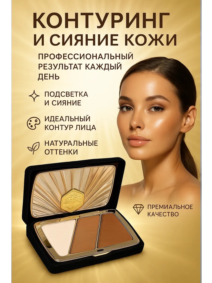| Полное наименование товара | Палетка для контуринга лица 3 в 1 с зеркалом – хайлайтер, бронзер, скульптор |