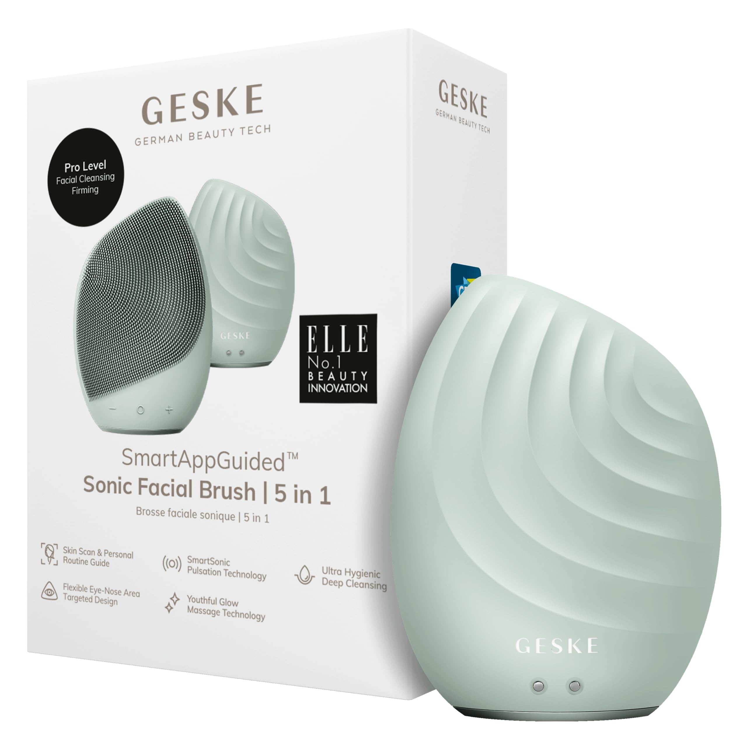 GESKE SmartAppGuided™ Sonic Facial Brush 5 in 1 Elektrische Gesichtsreinigungsbürste Weiche Bürste aus Silikon Professionelle Gesichtsreinigung Gesichtsreinigungsgerät Gesichtsmassagegerät Green