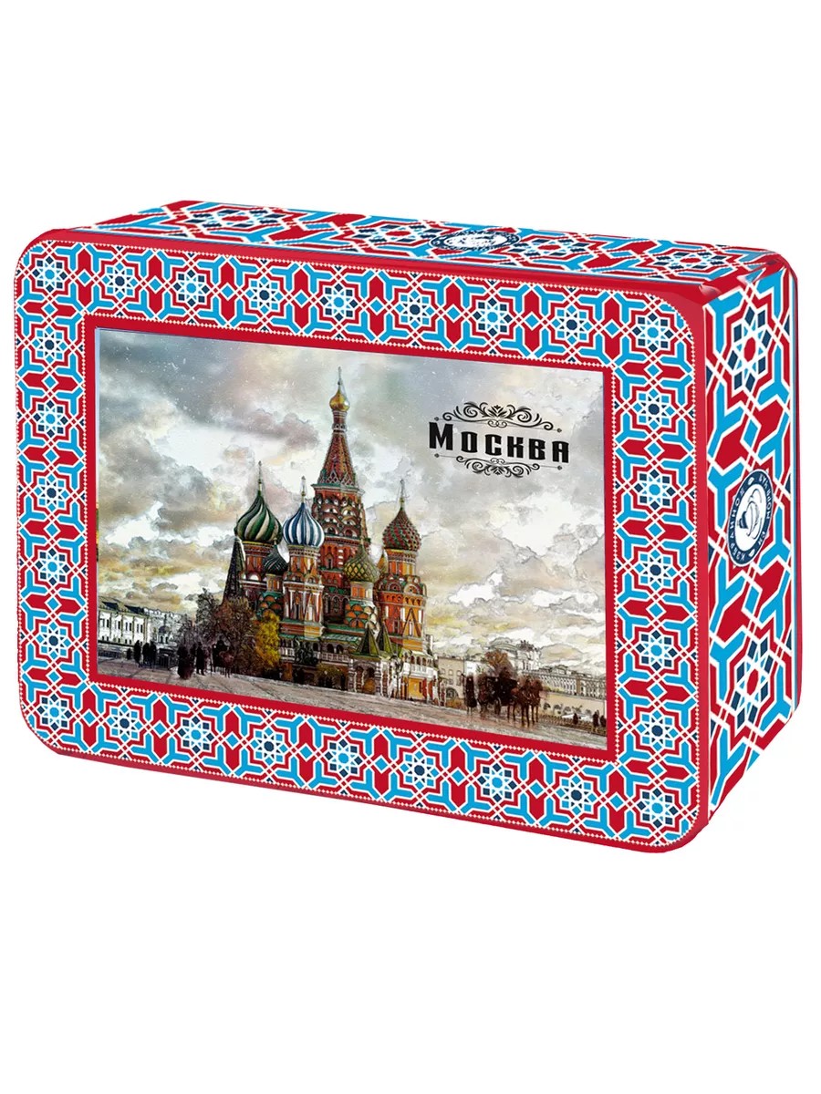 Large-leaf black tea, OPA standard, in a gift tin box with a magnet. Moscow - St. Basil's Cathedral. Manufacturer: Mabroc Teas, Sri Lanka. Ingredients: 100% Ceylon loose-leaf black tea. OPA standard (large leaf). The leaves for this tea are picked from the bushes after the buds have fully opened. When dry brewed, the leaves should be large (8 to 15 mm) and uniform. This variety contains virtually no tips, but has a high content of aromatic oils, making the tea infusion very aromatic. This tea also has a characteristic bitter taste due to the high content of tannins. The tea is packaged in foil to preserve freshness and aroma. The Lion with 17 spots on its skin is a guarantee from the Ceylon Tea Bureau that its tea meets the high quality standards set by the Government and is packaged only within Sri Lanka. A souvenir tin box with a hinged lid. The box is made of tin with embossed elements and coated with glossy varnish. Packed in polyethylene film. Box size: 11.5 x 15 x 5.5 cm. A magnet located on the lid of the box depicts a view of St. Basil's Cathedral. The magnet size is 7.4 x 10.5 cm. This tin box with a magnet Moscow - St. Basil's Cathedral will be an excellent souvenir and gift for any occasion, both for yourself and for friends, your beloved mom, dad, grandma, grandpa, colleagues, and relatives.