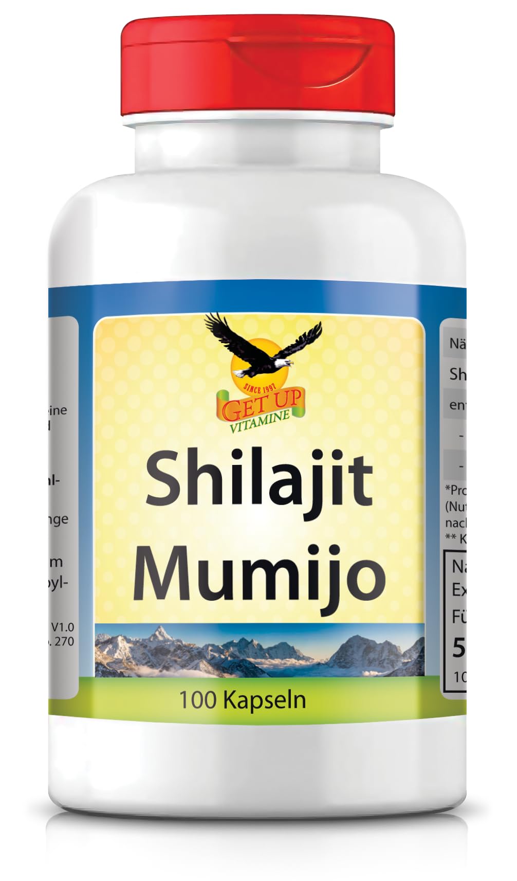? QUALITY PRODUCT: Lab-tested quality according to HACCP with a satisfaction guarantee. Get UP food supplements has been providing vital, naturally sourced substances since 1997. ? PERFORMANCE PRICE: One 100-capsule pack of Shilajit Mumijo is sufficient for 50 daily servings of fulvic and humic acid. ? Fulvic Humic Acid: Each daily serving of our Shilajit Mumijo capsules contains 500 mg of high-dose fulvic acid and 120 mg of humic acid. ? HIGH DOSE: Each daily serving of 2 capsules contains 1000 mg of Shilajit Mumijo in a 10:1 extract. This corresponds to a concentrated 10,000 mg (10 g) of natural shilajit resin. ? SHILAJIT MUMIJOO: Vegan and natural Mumijo Shilajit capsules are easy to use and particularly suitable for vegans, vegetarians, and health-conscious individuals. Mumijo Shilajit is characterized by its high content of fulvic and humic acids.