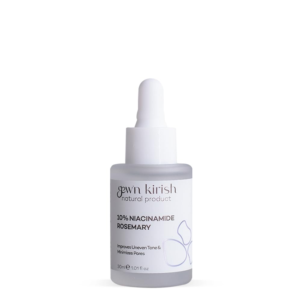 Discover clearer-looking skin with Gew'n Kirish 10 Niacinamide Rosemary Serum, a science-inspired yet gentle solution designed for everyday use. Powered by Vitamin B3 (Niacinamide), this formula helps improve the appearance of uneven tone while refining the look of enlarged pores. The result is skin that appears smoother, more balanced, and refreshed. Enriched with Rosemary Leaf Extract, the serum provides a botanical boost with a naturally uplifting touch, while also supporting overall skin comfort. Its lightweight, fast-absorbing texture makes it easy to layer under moisturizer, sunscreen, or makeup without leaving residue. Crafted as part of our commitment to clean beauty, the formula is vegan, cruelty-free, and free from parabens, sulfates, and artificial fragrances. Gentle enough for daily routines, yet effective enough to become a go-to essential for all skin types. Elevate your skincare regimen with Gew'n Kirish Niacinamide B3 Serum — a thoughtful blend of science and nature for a healthy-looking, radiant complexion.VEGAN CLEAN BEAUTY: 100 vegan, cruelty-free, and free from parabens, sulfates, and artificial fragrances for a gentle everyday skincare option. Caution: For external use only. Avoid eye contact. Use only as directed. Keep out of reach of children. If any irritation occurs, stop use of consult your physician. LIGHTWEIGHT FAST-ABSORBING: Non-sticky texture absorbs quickly, making it ideal for use under sunscreen or makeup in morning and evening routines. REFRESHING BOTANICAL TOUCH: Rosemary leaf extract adds a light, uplifting element while supporting overall skin comfort and balance. PORE-REFINING FORMULA: With daily use, helps reduce the appearance of enlarged pores, leaving skin with a more polished, even finish. BALANCED COMPLEXION: Formulated with 10 Niacinamide (Vitamin B3) to help improve the look of uneven tone and support smoother, more refined skin texture.