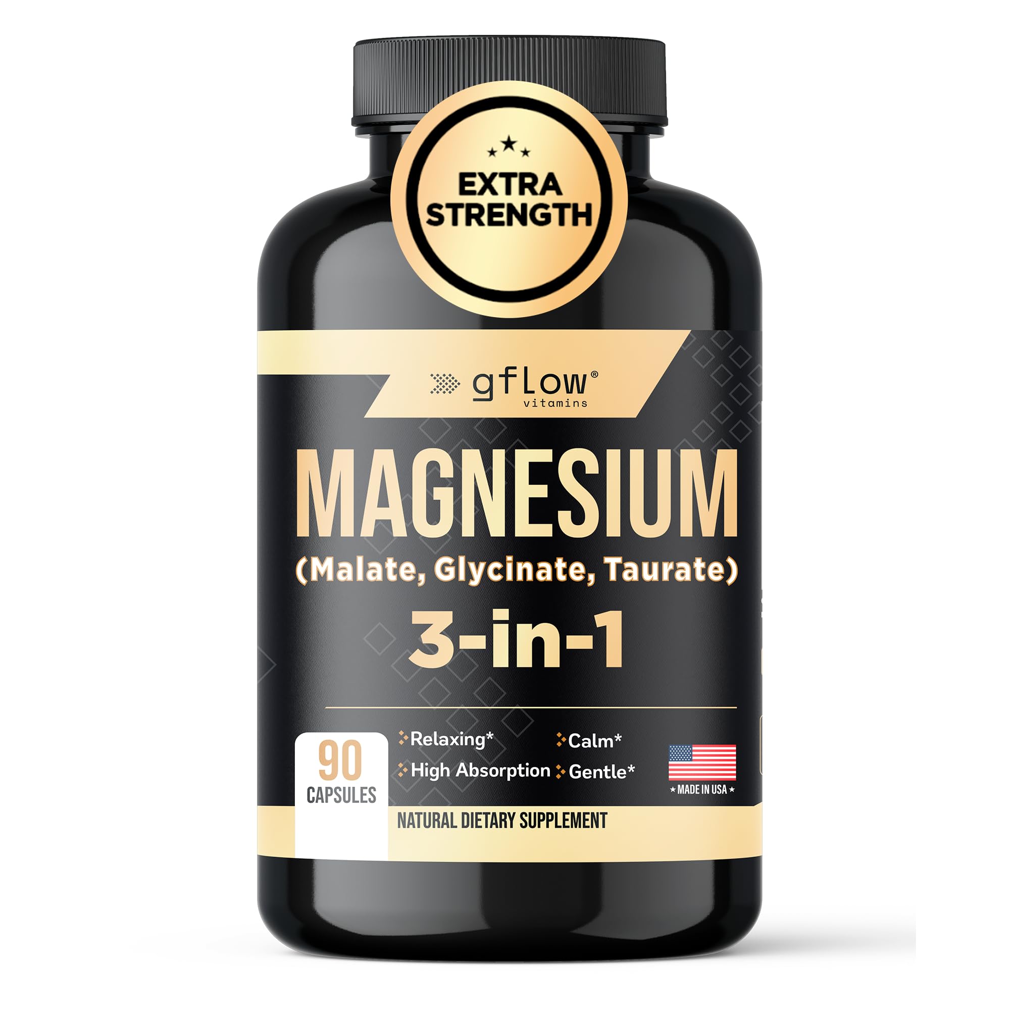 Gflow Vitamins Magnesium 3-in-1 - Magnesium Malate, Glycinate and Oxide in one Formula for Sleep and Calm | Made in The USA
