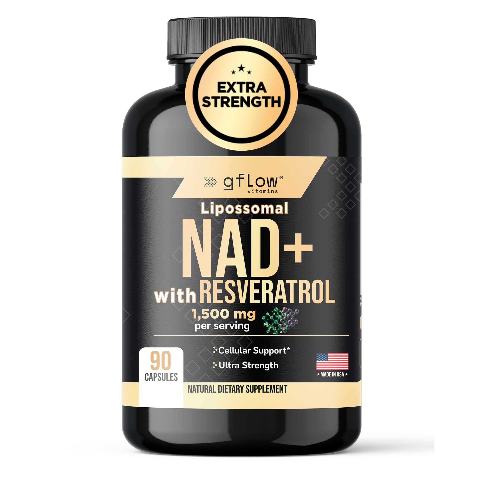 gflow vitamins NAD+ Supplement (Nicotinamide Adenine Dinucleotide) with Resveratrol as 98% Pure Trans-resveratrol | Antioxidant Anti-Aging Supplement Made in The USA