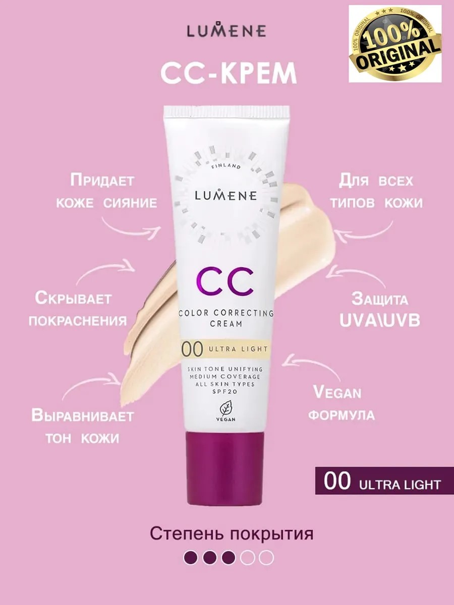 СС cream Ultra Light Lumene. СС-крем с SPF20 для коррекции цвета лица
