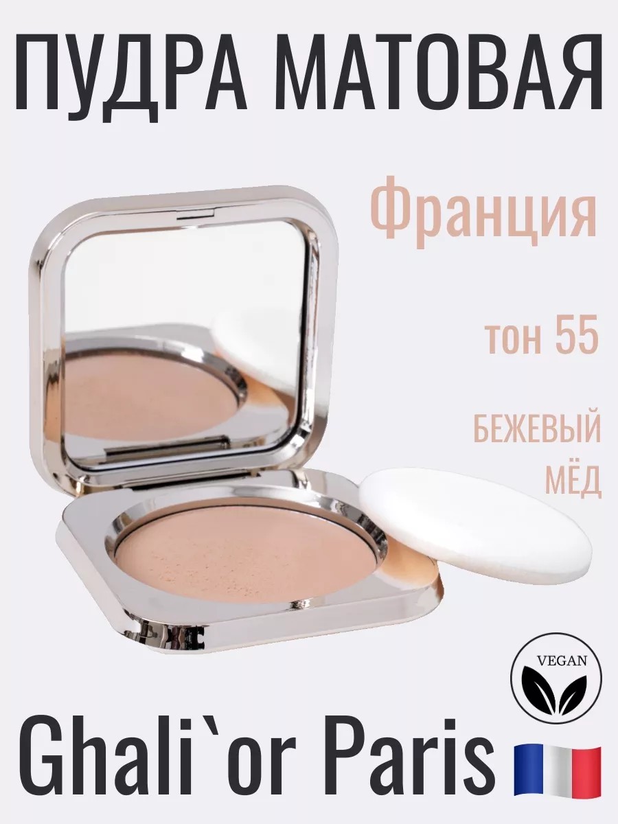 Компактная матовая пудра Ghali’or MATTE оттенок N°P55 Beige Miel, веганская косметика. В мире косметики важным элементом для создания идеального макияжа является пудра. Компактная матовая пудра Ghalior MATTE с зеркалом и спонжем — это именно тот продукт, который станет вашим незаменимым помощником в уходе за лицом и создании безупречного образа.