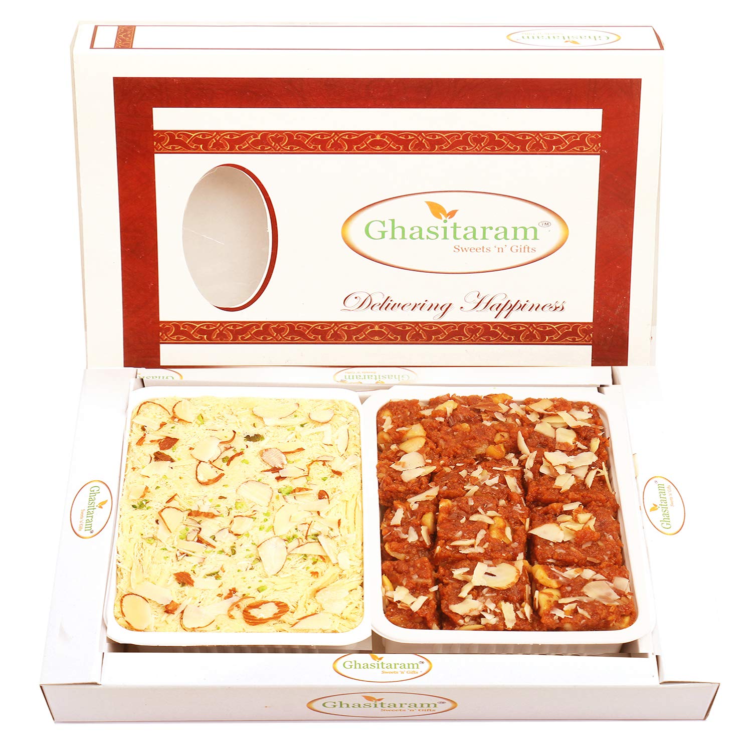 Ghasitaram Gifts Indian Sweets - Diwali Gifts Diwali Sweet - Dodha Barfi and Soan Papdi Hamper