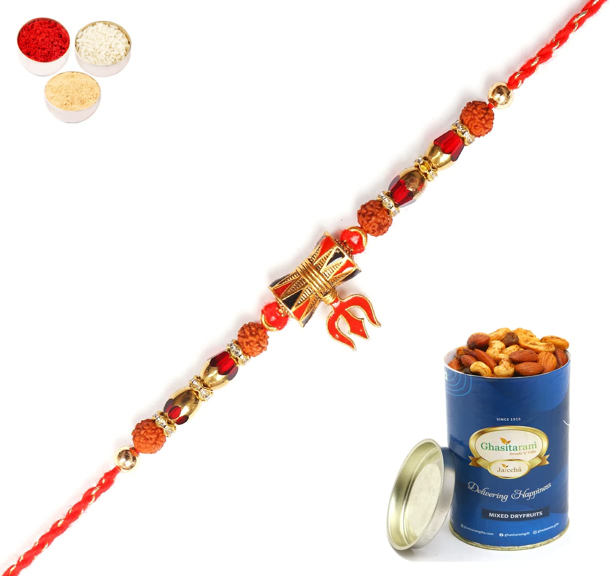 Ghasitaram Gifts Rakhi for Brother Rakhis Online - RM-709 Premium Rakhi with 100 GMS of Dryfruits Mix Can