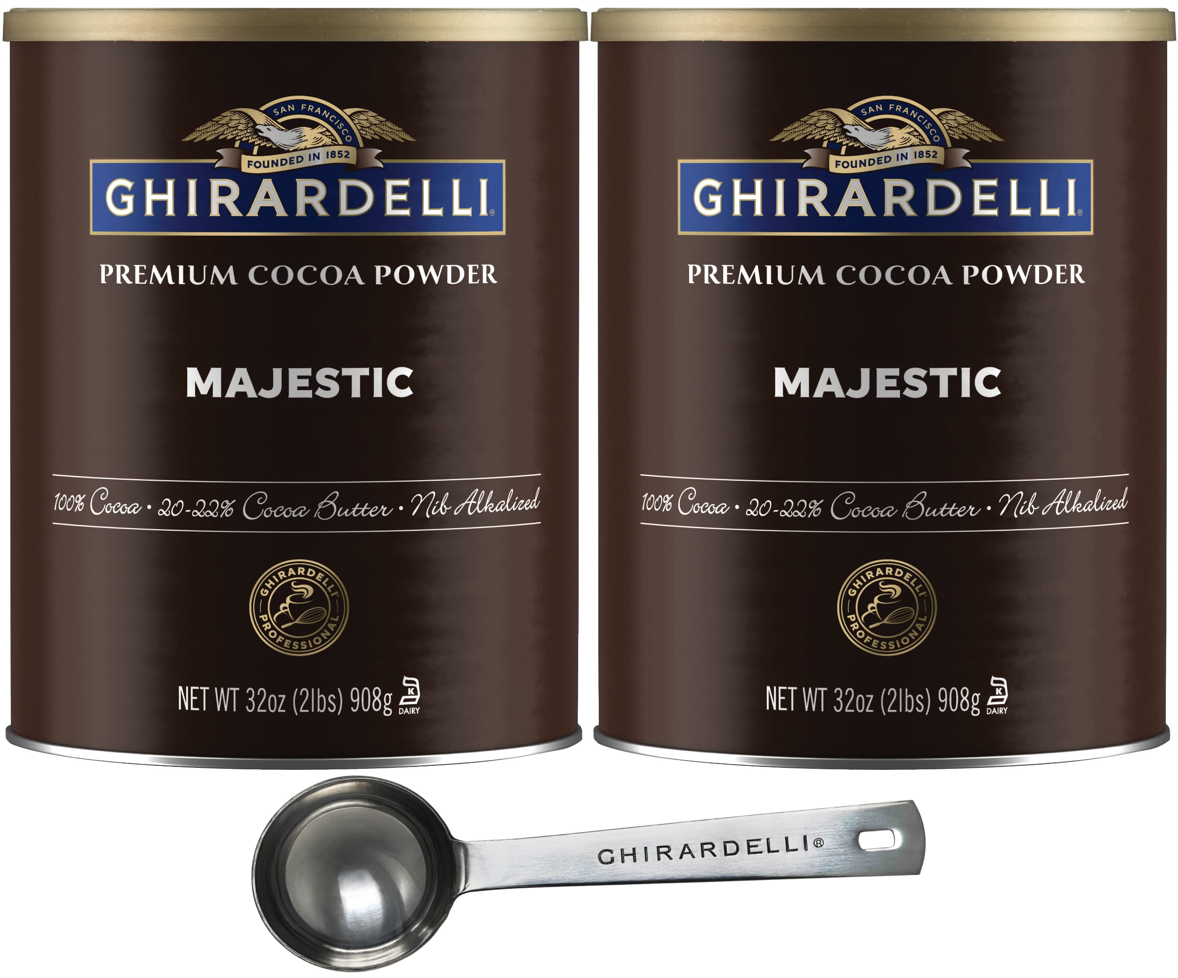 Ghirardelli Majestic Premium Cocoa Powder , 32 Ounce Can with Ghirardelli Stamped Barista Spoon