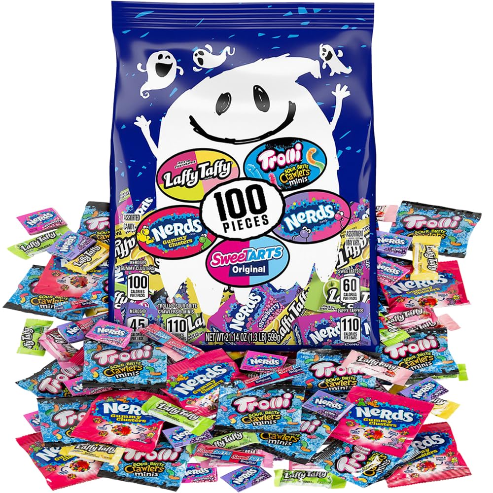 Get ready for Halloween with our creepy ghost goodies Halloween candy mix! This 33.87 oz pack includes 100 pieces of assorted fruity sweet and sour candies, perfect for trick-or-treaters and Halloween parties. Each candy is individually wrapped for freshness and easy distribution. Delight your guests with a mix of tangy and sweet flavors that are sure to satisfy every sweet tooth. Ideal for filling candy bowls, party favors, and treat bags, these candies are a must-have for a spooky and fun Halloween celebration!