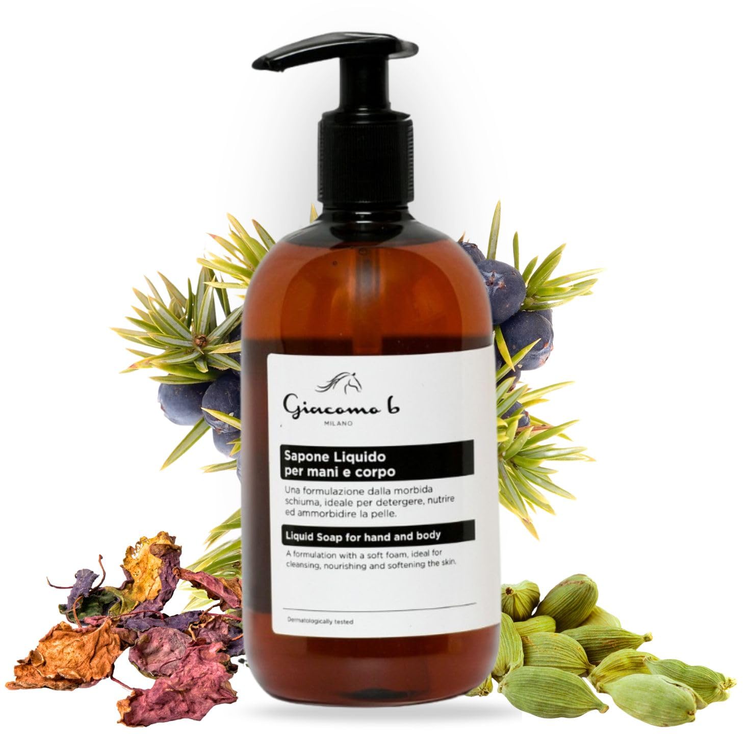 Discover Giacomo B Liquid Hand and Body Wash, a gentle and nourishing cleanser, ideal for those seeking a deep yet skin-friendly cleanse. Enriched with Nardo essential oil, known for its anti-inflammatory and antibacterial properties, its formula provides gentle yet effective action on hands, body, and face, while maintaining the skin's natural pH balance. Its soft, creamy lather removes impurities without drying, leaving a feeling of freshness and hydration. Nardo oil, with its soothing properties, combined with cardamom, artemisia, juniper, amber, patchouli, and cedarwood, offers a holistic wellness experience that engages all the senses. Also suitable as a facial cleanser, it's perfect for preparing the skin for your daily beauty routine, working gently on combination, dry, or sensitive skin. Its action makes it ideal for frequent use, whether in the shower, on the face, or for handwashing. Its gentle formula is perfect for the whole family, for those who want a versatile, mild, and skin-friendly product, and thanks to the 500ml size, it guarantees a long lifespan. It is also ideal for those with sensitive skin who are looking for a product that won't disrupt the skin's natural balance. Try it now for softer, fresher, and more protected skin every day. SAFETY WARNING For external use onlyFor all skin types: even for the most sensitive, this Italian-made face, hand, and body soap offers a deep yet gentle cleanse. Premium ingredients: our liquid soap is enriched with cardamom, artemisia, juniper, amber, patchouli, and cedarwood for a complete sensory wellness experience. Moisturizing shower gel: with its soft and delicate lather, our liquid soap is ideal for a revitalizing and relaxing shower. Gentle facial cleanser: ideal before your daily face and body skincare routine, it rebalances the skin's natural pH and deeply cleanses. Liquid hand and body soap: a gentle and nourishing formula with Nardo essential oil, known for its beneficial and soothing properties, for soft and clean skin.Giacomo B - Savon liquide pour les mains et le corps, nettoyant visage doux à l'huile essentielle de nard nourrissante et rééquilibrante, avec un parfum enveloppant - 500 mlDESCRIPTION DU PRODUIT DESCRIPTION DU PRODUIT Découvrez le savon liquide pour les mains et le corps Giacomo B, un nettoyant doux et nourrissant, idéal pour ceux qui recherchent un nettoyage en profondeur et respectueux de la peau. Grâce à sa formule enrichie en huile essentielle de Nardo, connue pour ses propriétés anti-inflammatoires et antibactériennes, elle offre une action douce mais efficace sur les mains, le corps et le visage, tout en conservant l'équilibre naturel du pH de la peau. Sa mousse douce et crémeuse élimine les impuretés sans dessécher, laissant une sensation de fraîcheur et d'hydratation. L'huile de Nardo, aux propriétés apaisantes, combinée à la cardamome, à l'artemisia, au genévrier, à l'ambre, au patchouli et au bois de cèdre, offre une expérience de bien-être intégrale qui engage tous les sens. Convient également comme nettoyant pour le visage, il est parfait pour préparer la peau à la routine beauté quotidienne, en agissant doucement sur les peaux mixtes, sèches ou sensibles. Son action en fait un produit idéal pour un usage fréquent, aussi bien sous la douche, sur le visage que pour le lavage des mains. Sa formule délicate est parfaite pour toute la famille, pour ceux qui veulent un produit polyvalent, doux et respectueux de leur peau, et grâce au format de 500 ml, il garantit une longue durée de vie. Il est également idéal pour ceux qui ont la peau sensible et recherchent un produit qui ne perturbe pas l'équilibre cutané naturel. Essayez-le maintenant pour une peau plus douce, plus fraîche et plus protégée tous les jours. AVERTISSEMENT DE SÉCURITÉ Pour usage externe uniquementPour tout type de peau : même pour les plus sensibles, ce savon pour le visage, les mains et le corps, fabriqué en Italie, offre un nettoyage en profondeur et respectueux de la peau. Ingrédients premium : notre savon liquide est enrichi en cardamome, artémisie, genévrier, ambre, patchouli et bois de cèdre, pour une expérience de bien-être sensoriel complète. Gel douche hydratant : avec sa mousse douce et délicate, notre savon liquide est idéal pour une douche régénérante et relaxante. Nettoyant visage doux : idéal avant la routine quotidienne de soins de la peau du visage et du corps, rééquilibre le pH naturel de la peau et nettoie en profondeur. Savon liquide pour les mains et le corps : formule douce et nourrissante à l'huile essentielle de Nardo, connue pour ses propriétés bénéfiques et apaisantes, pour une peau douce et propre.