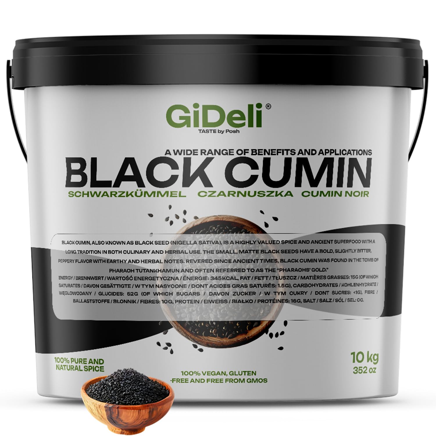 GiDeli Graines entières de cumin noir dans un seau de 10 kg de véritables graines de nigelle polyvalentes dans votre cuisine