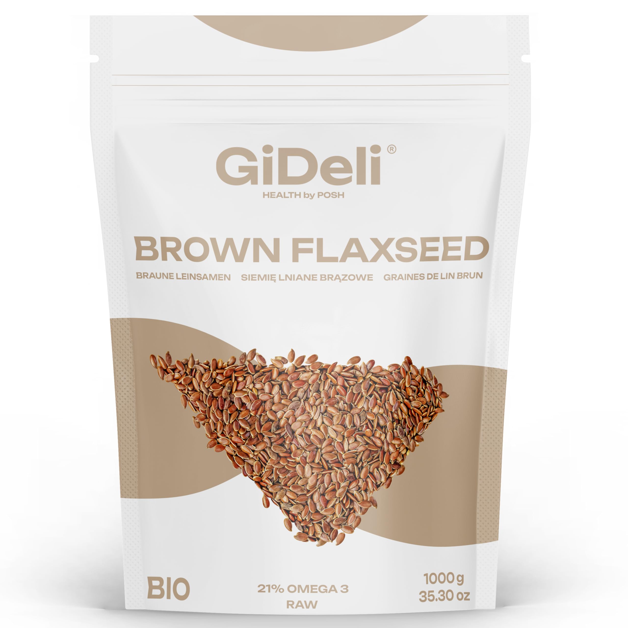 : These small brown seeds are a true treasure of nature – rich in fiber, omega-3 fatty acids, and lignans, they support digestion, help regulate cholesterol levels, and boost the immune system. They are perfect as an addition to yogurt, porridge, smoothies, or baked goods. This product comes from the highest quality crops it is natural, unprocessed, and free of any additives – ideal for vegans, vegetarians, and anyone committed to a healthy lifestyle. Ingredients: Brown Flax SeedsFreshly packaged – the airtight packaging protects against moisture and fully preserves nutritional value. For everyone – suitable for vegans and vegetarians, they support a healthy diet and promote good digestion. Versatile use – ideal for porridge, smoothies, baking, or as a salad topping. Nutrient-rich – contain fiber, omega-3 fatty acids, and lignans. Natural Brown Flax Seeds – 100 pure, unprocessed, with no additives or preservatives.Description du produit Ces petites graines brunes sont un véritable trésor de la nature – riches en fibres, en acides gras oméga-3 et en lignanes, elles soutiennent la digestion, aident à réguler le taux de cholestérol et renforcent le système immunitaire. Elles sont parfaites comme ajout au yaourt, au porridge, aux smoothies ou aux produits de boulangerie. Ce produit provient de cultures de la plus haute qualité, il est naturel, non transformé et sans aucun additif – idéal pour les végétaliens, les végétariens et toutes les personnes soucieuses d'un mode de vie sain. Ingrédients Graines de Lin BrunEmballées fraîchement – l'emballage hermétique protège de l'humidité et préserve pleinement les valeurs nutritionnelles. Pour tous – adaptées aux végétaliens et végétariens, elles soutiennent une alimentation saine et favorisent une bonne digestion. Utilisation polyvalente – idéales pour le porridge, les smoothies, la pâtisserie ou comme garniture pour les salades. Riches en nutriments – contiennent des fibres, des acides gras oméga-3 et des lignanes. Graines de lin Brun naturelles – 100 pures, non transformées, sans additifs ni conservateurs.GiDeli Graines de Lin Brun Muesli aux graines de lin un complément alimentaire naturel et végan. (1kg)