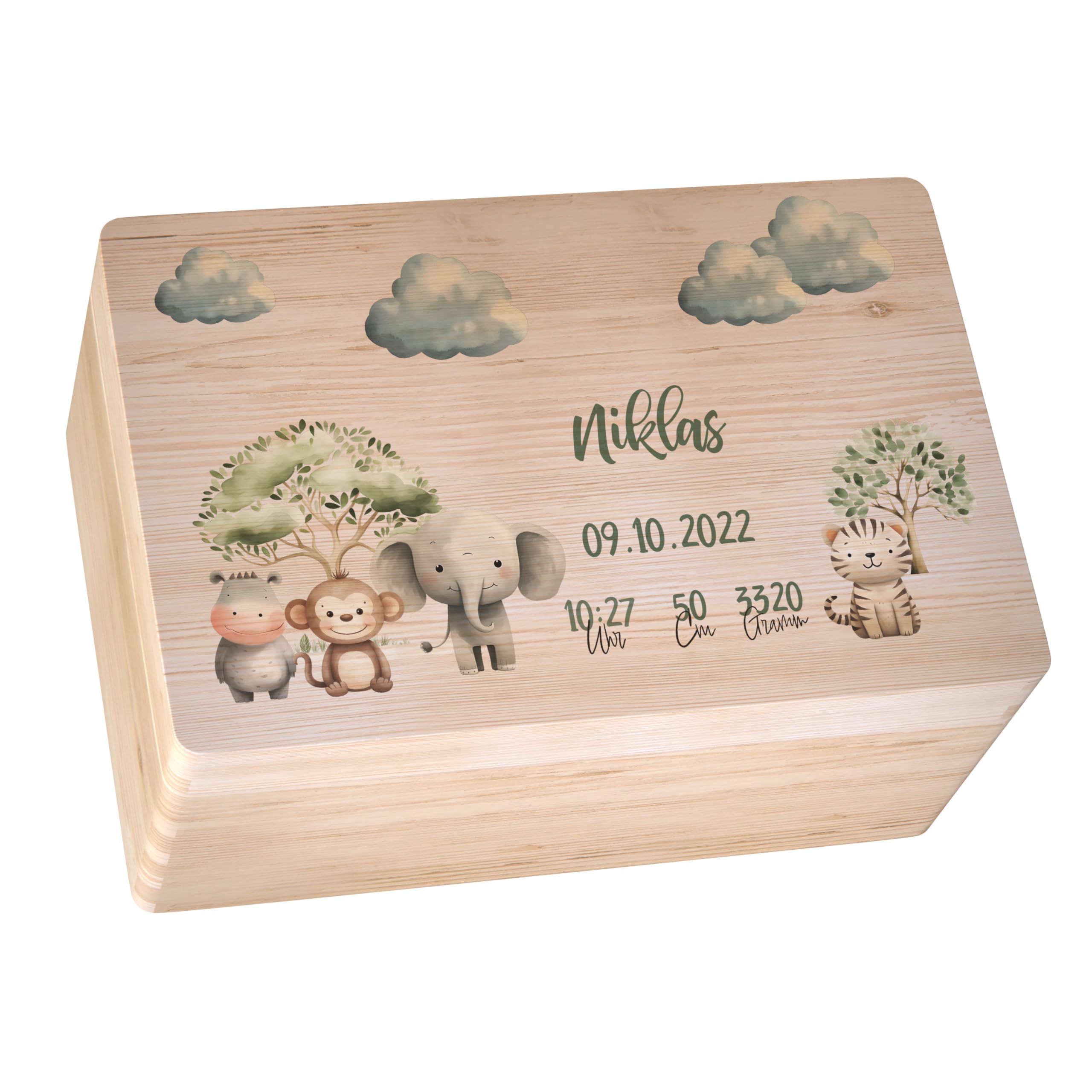 Geschenkfreude Baby Aufbewahrungsbox mit UV Druck - 30x20x14cm - Erinnerungsbox Baby personalisiert - Geschenk zur Geburt - Erinnerungsbox Kinder - personalisierte Baby Box - Holzkiste Baby Afrika