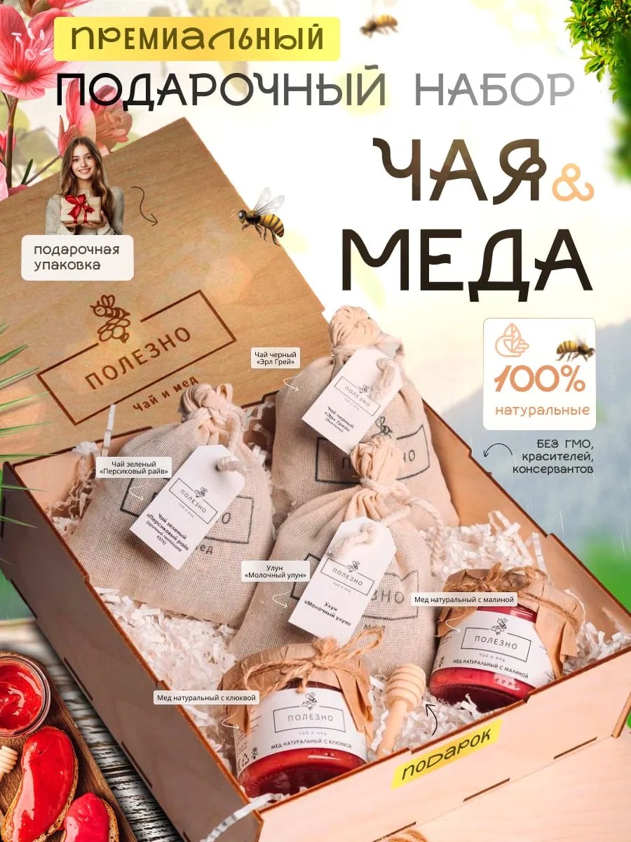| Комплектация | Молочный улун; зеленый персиковый чай; эрл грей; крем-мед 2 шт; подарочная коробка; ложка для меда; Бумажный наполнитель |