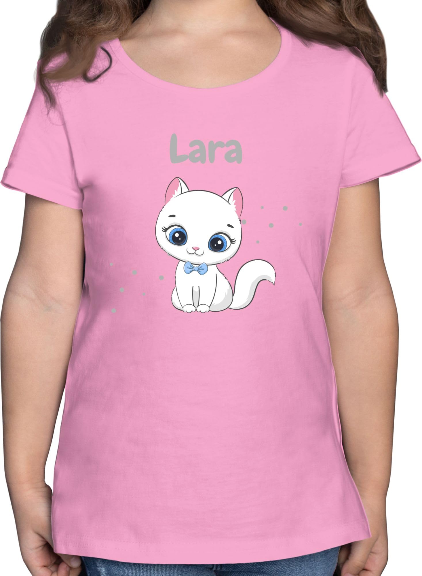 Geschenk mit Namen personalisiert by Shirtracer - T-Shirt Mädchen - Süße Katze Katzen Katzenmotiv Cat Cats 05 Rosa 104