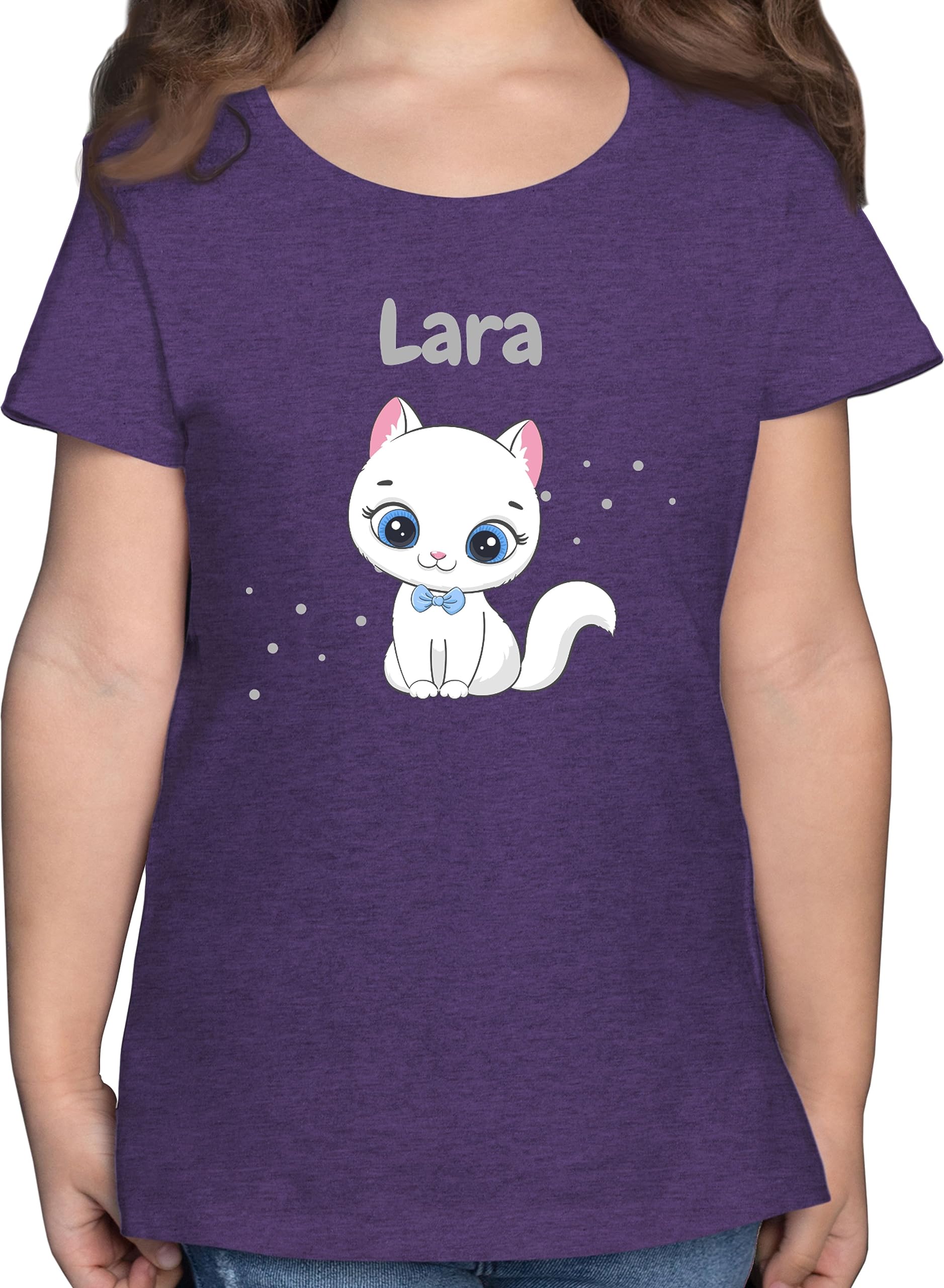 Geschenk mit Namen personalisiert by Shirtracer - T-Shirt Mädchen - Süße Katze Katzen Katzenmotiv Cat Cats 09 Lila Meliert 164