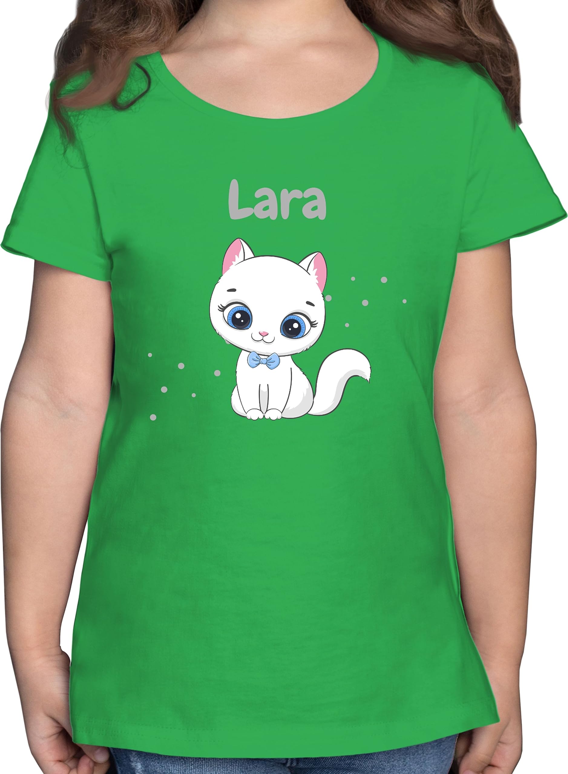 Geschenk mit Namen personalisiert by Shirtracer - T-Shirt Mädchen - Süße Katze Katzen Katzenmotiv Cat Cats 10 Grün 128