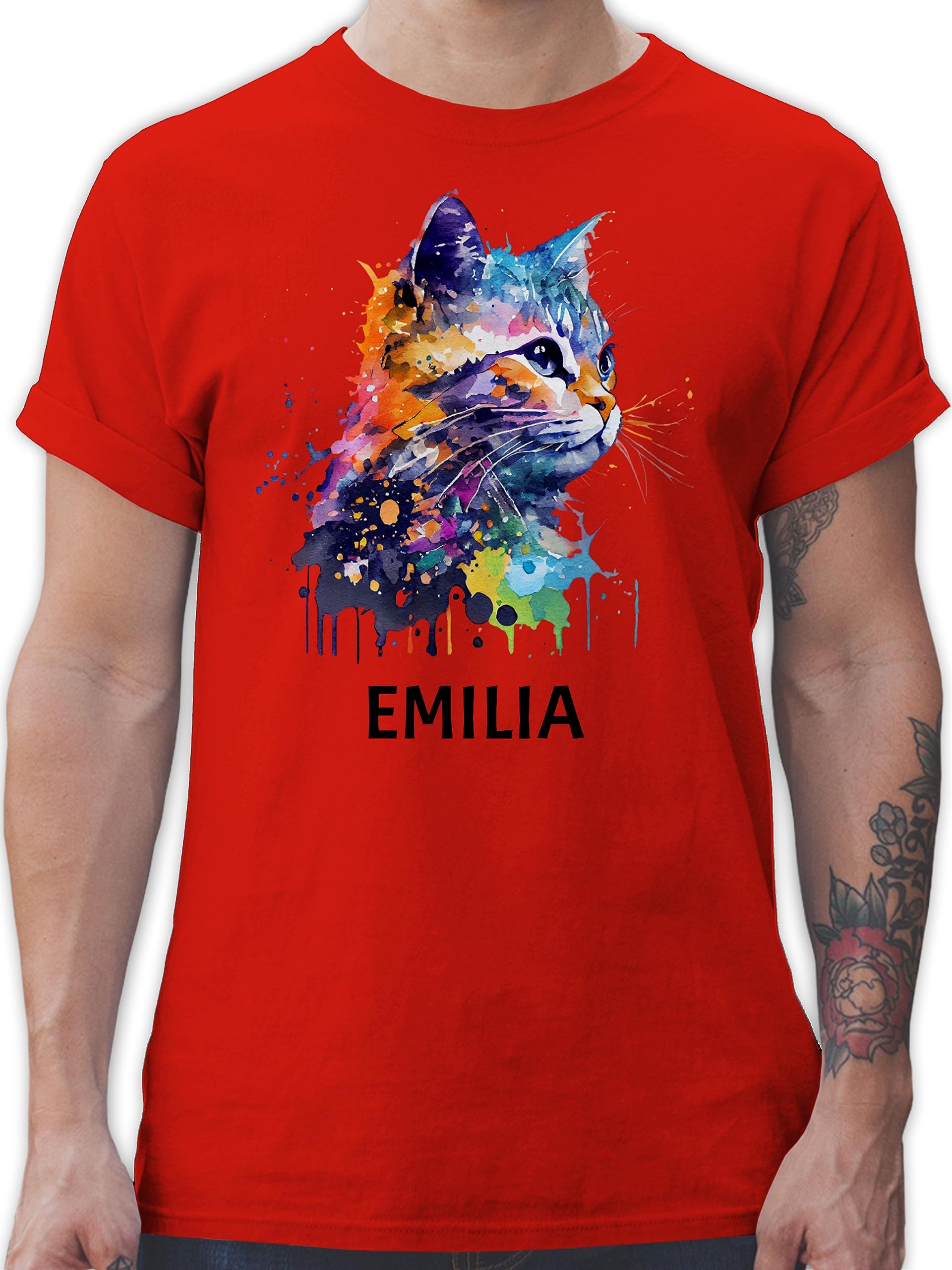 Gift with name personalized by Shirtracer - T-Shirt Men - Cat Cat Citten Cats Cat Lover 03 Red M
