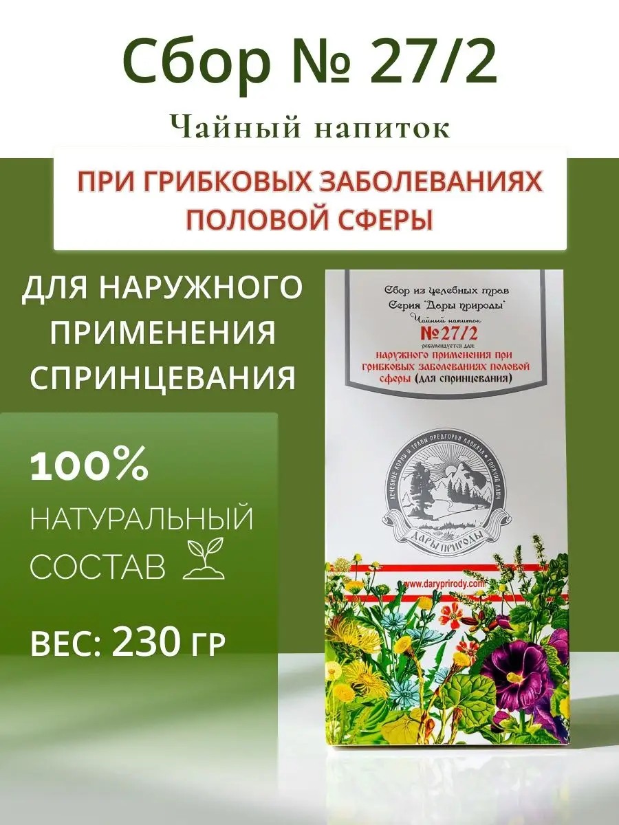 Способствует оказанию противовоспалительного,обезболевающего,антимикробного действий,нормализации работы мочеполовой системы. СБОР № 27/2 Сбор при грибковых заболеваниях половой сферы (для спринцеваний).