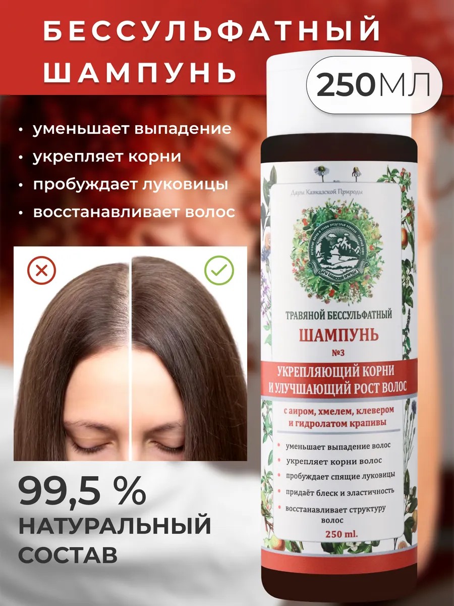 Бессульфатный ШАМПУНЬ ПРОТИВ ВЫПАДЕНИЯ ВОЛОС № 3.