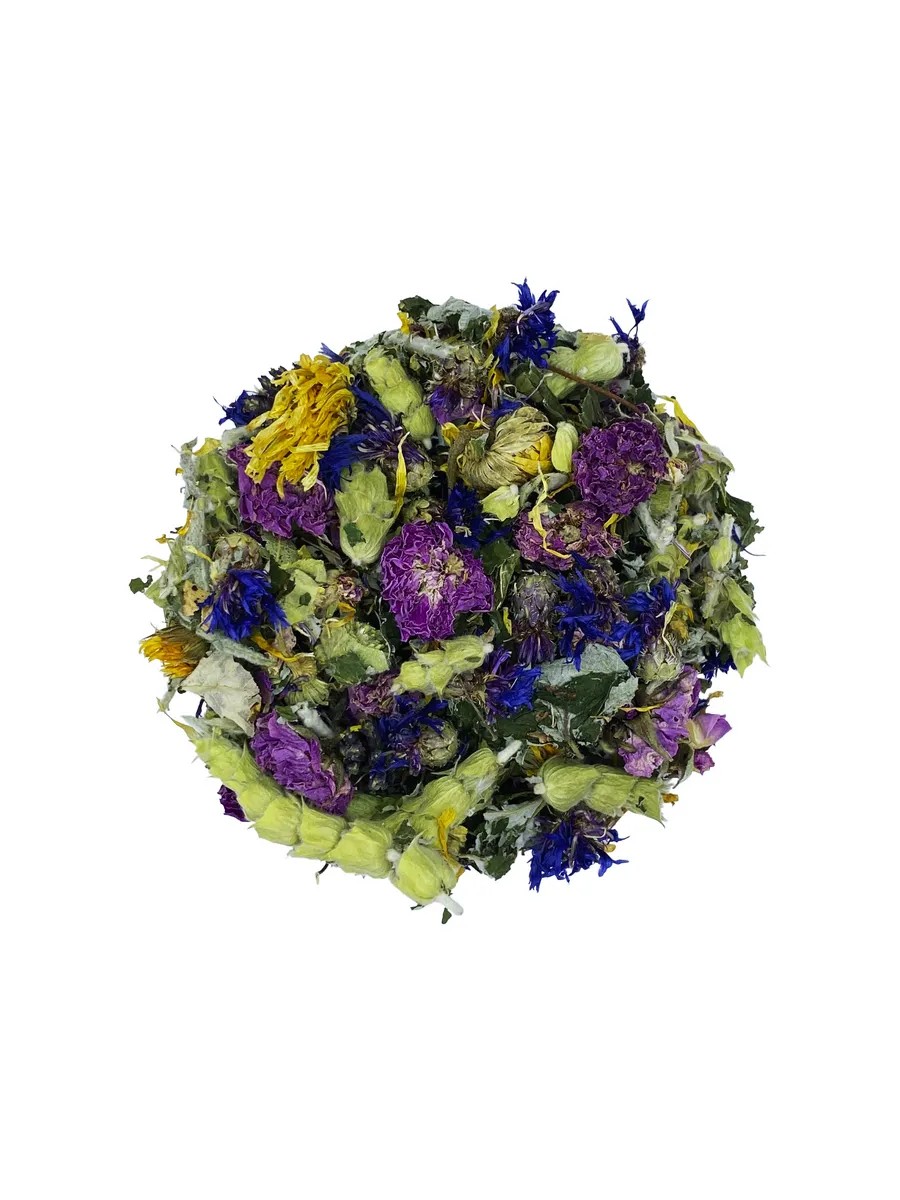 Activates the immune system, gives energy. Ingredients: lemongrass, echinacea, rose, cornflower, oregano. linden, mint, lemon balm, calendula. comfrey, hazel leaf.