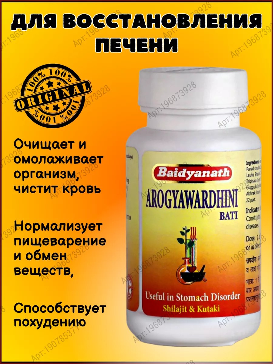 Арогьявардхини Бати (Arogyawardhini Bati) Baidyanat - эффективное аюрведическое средство для восстановления печени, мощный гепатопротектор. Улучшает работу желчевыводящей и пищеварительной систем, регулирует метаболизм, выводит шлаки, токсины, жиры, избавляет тело от Амы, повышает всасываемость полезных веществ из пищи клетками организма. Помогает сбросить лишний вес.