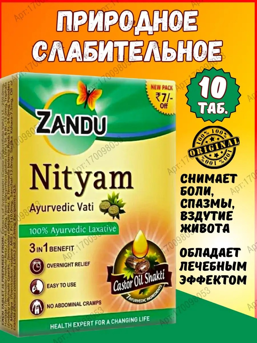 Дары Индии Nityam Zandu (Нитьям) Природное слабительное, 10 таб.
