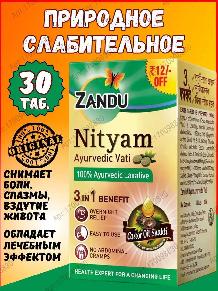 Дары Индии Nityam Zandu (Нитьям) Природное слабительное, 30 таб.