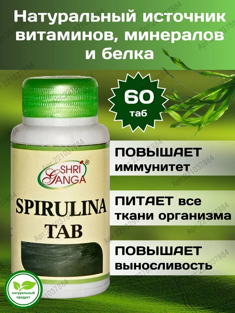 Спирулина в таблетках (Spirulina) Shri Ganga - богатейший натуральный источник белка, питательных веществ и витаминов, необходимых для поддерживания жизнедеятельности, здоровья и красоты. Все полезные элементы, находящиеся в составе Спирулины, легко усваиваются организмом с максимальной пользой.Спирулина содержит важный растительный белок, аминокислоты, витамины В11 и РР, бета-каротин, железо, а также фикоцианин - вещество, останавливающее рост раковых клеток. Это средство поможет восполнить недостаток полезных веществ при ограниченном питании, диетах, вегетарианстве.Также Спирулина очищает организм, выводит шлаки и токсины, чистит кровь, повышает иммунитет. Снижает уровень холестерина и сахара в крови. Является источником энергии, улучшает работу мозга, память и интеллект. Средство улучшает зрение, помогает при кожных заболеваниях, питает кожу и стимулирует рост волос.