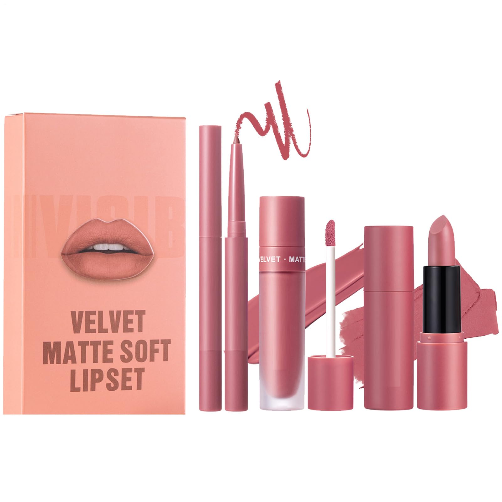 Fuller Lips: Glide on effortlessly with our Lipstick Lip Pencil Kit, featuring a velvety matte texture that delivers rich color and perfectly defines delicate lip lines for a fuller, more charming look. Perfect Gift Choice: Looking for the perfect gift for friends or family on special occasions? Look no further than this Lipstick Lip Pencil Kit, an ideal choice to surprise and delight the recipient. Seamless Application: Applies smoothly without leaving unwanted smudges, can be easily removed with an oil-based cleanser, and reapplied multiple times for deeper color. Long-Lasting Cosmetics: Experience a formula that won't fade or transfer with our Lipstick Lip Pencil Kit. Keep your lip color looking its best all day, even through meals and drinks. Smudge-proof and long-lasting, this makeup is a must-have. Complete Set: Create the perfect lip look with the Lipstick Lip Pencil Kit. It includes a lip gloss to meet various needs, a precise lip pencil for perfect definition, and a matte lipstick for an elegant and versatile look.
