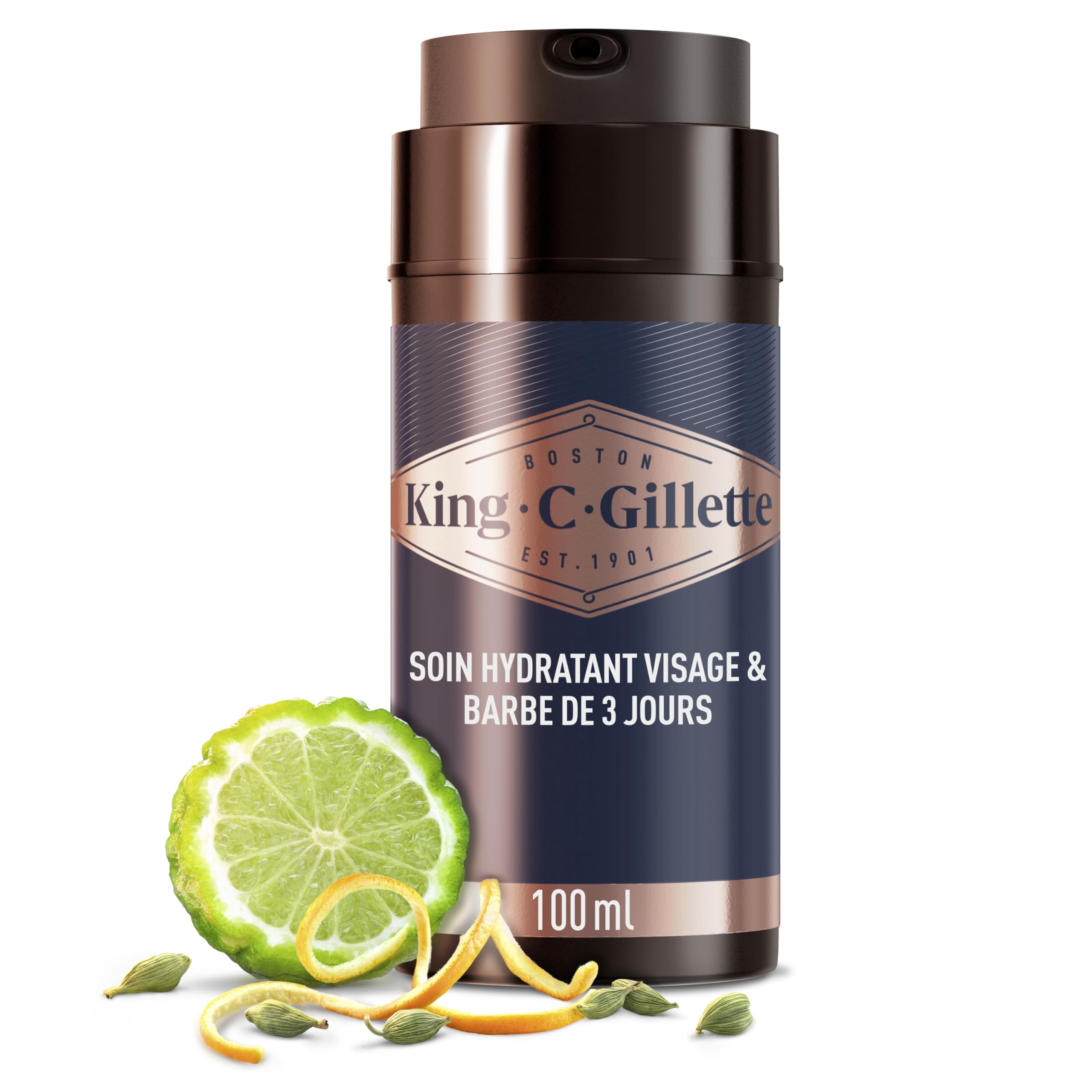 King C. Gillette Face Short Beard Moisturizer is a true double agent. It provides long-lasting hydration and helps maintain your skin's natural moisture barrier and soften and smooth coarse, shaggy short beards. Your moisturizer features our signature scent with notes of bergamot, geranium, and cedarwood. To use, pour a small amount into your hand, then smooth it over your face and short beard. Use daily for the best possible results: healthy-looking skin with visibly reduced irritation and redness. INGREDIENTS Aqua, Dimethicone, Niacinamide, Glycerin, Dimethiconecrosspolymer, Polyacrylamide, Panthenol, C13-14Alkane, Benzylalcohol, Hydroxyacetophenone, Polysorbate20, Laureth-4, Parfum, Laureth-7, Disodium EDTA, Menthapiperita Oil, Linalool, Coumarin, Tocopherylacetate, Argania Spinosakerneloil, LimoneneFor daily use after cleansing for healthy-looking skin with visibly reduced irritation and redness. Features a signature scent with notes of sandalwood, cedar, bergamot, cardamom, and mandarin. Moisturizes and conditions beard hair with a lightweight formula for a light, pleasant feel on skin. Moisturizes beard and face to help calm and relieve signs of skin dryness and irritation. King C. Gillette Short Beard Face Moisturizer moisturizes and conditions your beard hair to soften and smooth coarse, shaggy short beards. Le soin hydratant visage et barbe courte King C. Gillette est un véritable agent double. Il fournit une hydratation durable et aide à maintenir la barrière d'hydratation naturelle et de votre peau et à adoucir et lisser la barbe courte rêche et hirsute. Votre soin hydratant comprend notre parfum signature avec des notes de bergamote, de géranium et de bois de cèdre. Pour l'utiliser, versez une petite quantité dans votre main, puis appliquez-le sur votre visage et votre barbe courte. Utilisez-le tous les jours pour les meilleurs résultats possibles : une peau saine avec une irritation et des rougeurs visiblement réduites. INGRÉDIENTS Aqua, Dimethicone, Niacinamide, Glycerin, Dimethiconecrosspolymer, Polyacrylamide, Panthenol, C13-14Alkane, Benzylalcohol, Hydroxyacetophenone, Polysorbate20, Laureth-4, Parfum, Laureth-7, Disodium EDTA, Menthapiperita Oil, Linalool, Coumarin, Tocopherylacetate, Argania Spinosakerneloil, LimonenePour une utilisation quotidienne après le nettoyage pour une peau saine avec une irritation et des rougeurs visiblement réduites. Comprend un parfum signature avec des notes de bois de santal, de cèdre, de bergamote, de cardamome et de mandarine. Hydrate et revitalise les poils de barbe avec une formule légère pour une sensation légère et agréable sur la peau. Hydrate la barbe et le visage pour aider à calmer et à soulager les signes de sécheresse et d'irritation de la peau. Le soin hydratant visage et barbe courte King C. Gillette hydrate et revitalise les poils de votre barbe pour adoucir et lisser la barbe courte rêche et hirsute.