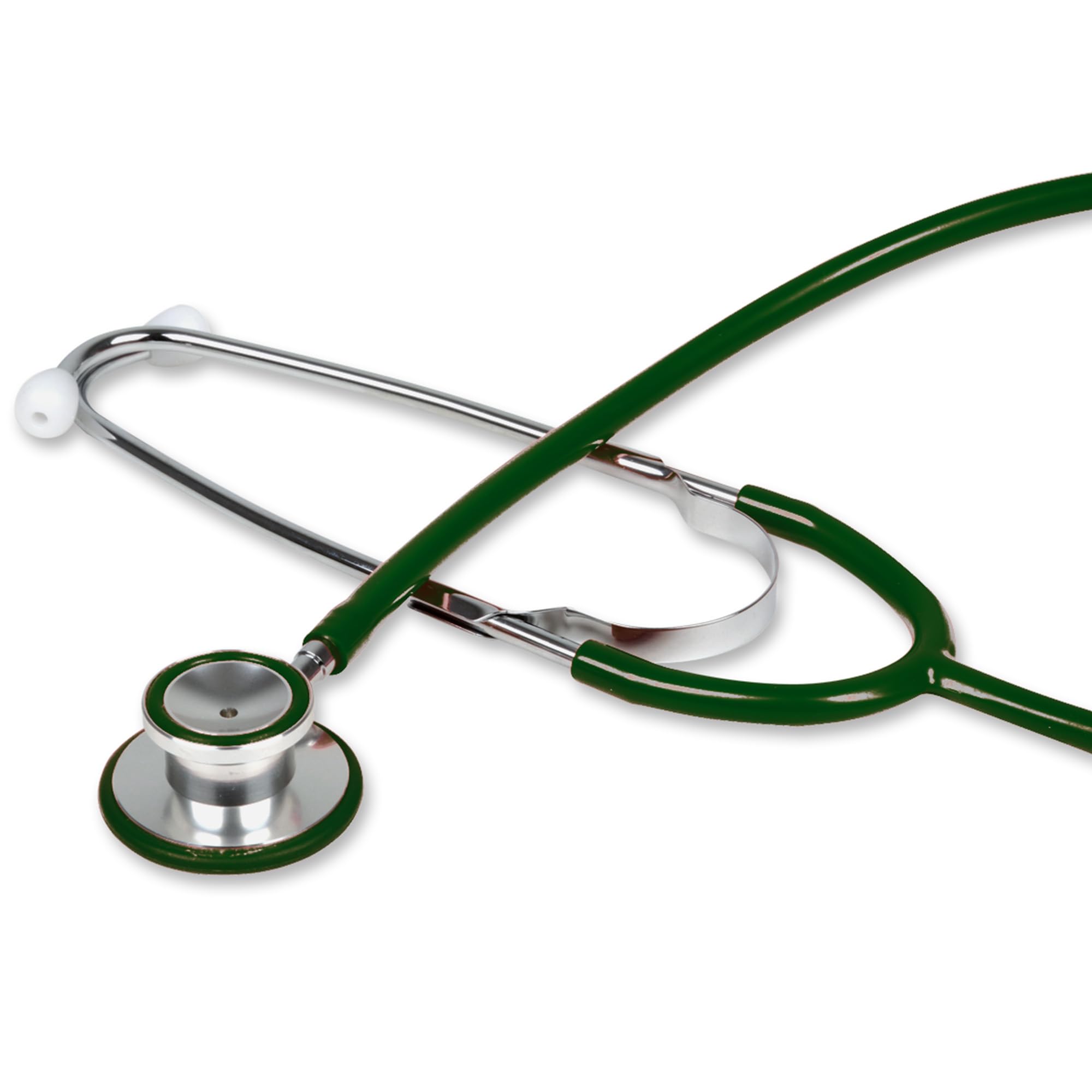 TRAD Double Head STETHOSCOPES - Adult - LATEX FREE. Classic aluminum stethoscopes, lightweight and reliable. Chestpiece Ø 43.5 mm, bell Ø 30 mm external measurements. Brass lyre, anti-chill ring. Tubing length 62 cm, int. Ø 4 mm, ext. Ø 8 mm. Supplied in a cardboard box. Box and instructions in 11 languages: GB, FR, IT, ES, DE, PT, GR, PL, HU, SE, Arabic. Color Y Dark GreenColor: Dark Green Y-shaped tubing. Tubing dimensions: length 62 cm, int. Ø 4 mm, ext. Ø 8 mm. Brass lyre and anti-chill ring for a more delicate contact. Double head stethoscope chestpiece Ø 43.5 mm. Traditionally designed double head stethoscope in aluminum, lightweight but durable. Dark Green Y color. Supplied in a cardboard box. Box and instructions in 11 languages: GB, FR, IT, ES, DE, PT, GR, PL, HU, SE, Arabic. Tubing length 62 cm, int. Ø 4 mm, ext. Ø 8 mm. Chestpiece Ø 43.5 mm, bell Ø 30 mm external measurements. Brass lyre, anti-chill ring. TRAD Double Head STETHOSCOPES - Adult - LATEX FREE. Classic aluminum stethoscopes, lightweight and reliable. STÉTHOSCOPES Tête Double TRAD - Adulte - SANS LATEX. Des stéthoscopes classiques en aluminium, légers et fiables. Pavillon Ø 43,5 mm, cloche Ø 30 mm mesures externes. Lyre en laiton, bague anti-froid.Tubulure longueur 62 cm, int. Ø 4 mm, ext. Ø 8 mm.Livrés dans une boîte en carton. Boîte et mode d'emploi en 11 langues: GB, FR, IT, ES, DE, PT, GR, PL, HU, SE, Arabe. Couleur Y Vert FoncéCouleur: tubulure en Y vert foncé. Dimensions de la tubulure: longueur 62 cm, Ø int. 4 mm, Ø ext. 8 mm. Lyre en laiton et bague anti-froid pour un contact plus délicat. Pavillon du stéthoscope double tête Ø 43,5 mm. Stéthoscope tête double de conception traditionnelle en aluminium, léger mais résistant. Couleur Y Vert Foncé. Livrés dans une boîte en carton. Boîte et mode d'emploi en 11 langues: GB, FR, IT, ES, DE, PT, GR, PL, HU, SE, Arabe. Tubulure longueur 62 cm, int. Ø 4 mm, ext. Ø 8 mm. Pavillon Ø 43,5 mm, cloche Ø 30 mm mesures externes. Lyre en laiton, bague anti-froid. STÉTHOSCOPES Tête Double TRAD - Adulte - SANS LATEX. Des stéthoscopes classiques en aluminium, légers et fiables.