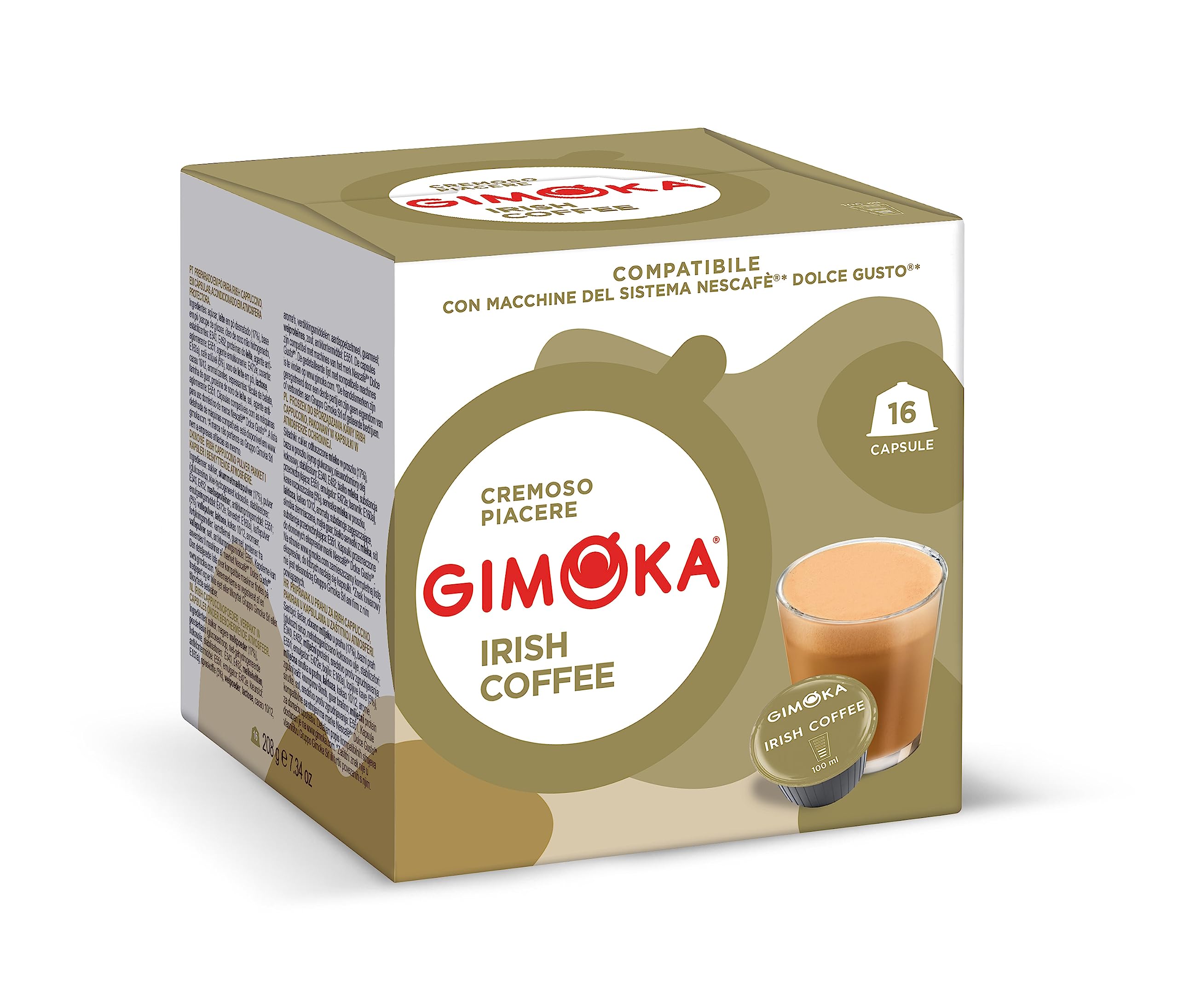 Gimoka 48 Capsule - IRISH COFFEE - Made in Italy - 3 Confezioni Da 16 Capsule INGREDIENTS Gimoka 48 Capsule - IRISH COFFEE - Made in Italy - 3 Confezioni Da 16 Capsule SAFETY WARNING Lactose-free and containing caffeine. Not suitable for people sensitive to caffeine. See moreGimoka Capsule voor Dolce Gusto - IERSE KOFFIE - Made In Italy - 3 Confezioni Da 16 Capsule Gimoka 48 Capsule - IERSE KOFFIE - Gemaakt in Italië - 3 Confezioni Da 16 Capsule INGREDIËNTEN Gimoka 48 Capsule - IERSE KOFFIE - Gemaakt in Italië - 3 Confezioni Da 16 Capsule VEILIGHEIDSWAARSCHUWING Lactosevrij en cafeïne bevattend. Niet geschikt voor mensen die gevoelig zijn voor cafeïne. Meer bekijken