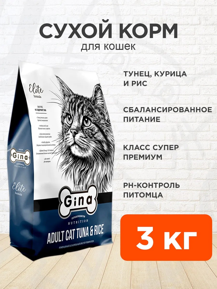 Gina Корм сухой Elite для кошек тунец рис 3 кг