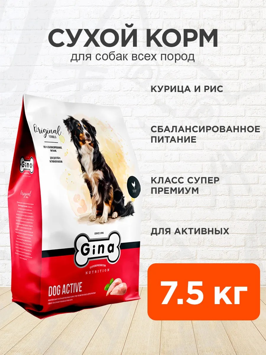 Gina Корм сухой для активных собак курица рис 7,5 кг