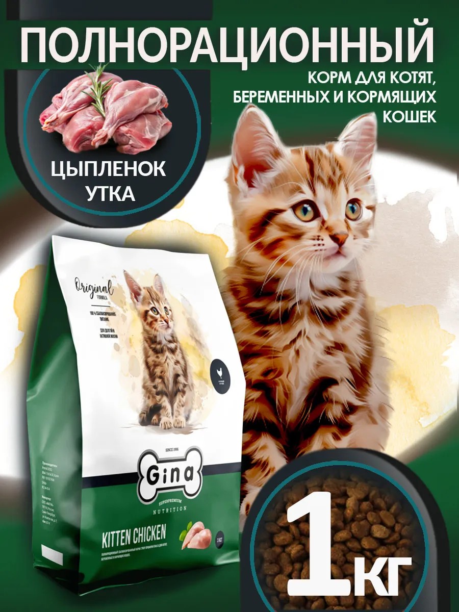 Корм для котят, беременных и кормящих кошек супер премиум класса Gina Kitten Chicken (цыпленок и утка) — полноценное питание для питомца. Сбалансированный состав укрепляет иммунитет, поддерживает здоровье мочевыделительной системы, суставов, шерсти, зубов, костей, обеспечивает рост и развитие котенка, восполняет потребности беременной и кормящей кошки. Нежное мясо цыплят, утка, растительные компоненты и пробиотики благоприятно влияют на микрофлору и работу кошачьего пищеварения. Наличие пробиотиков поддерживает баланс полезной кишечной микрофлоры и обеспечивает правильную работу пищеварительной системы. Комплекс антиоксидантов естественным образом обеспечивает здоровье организма, укрепляет иммунитет. Рекомендуется сухой корм Джина Киттен для котят с четырех недель, кошек со второй половины беременности и для кормящих кошек в соответствии с нормами указанными на упаковке.
