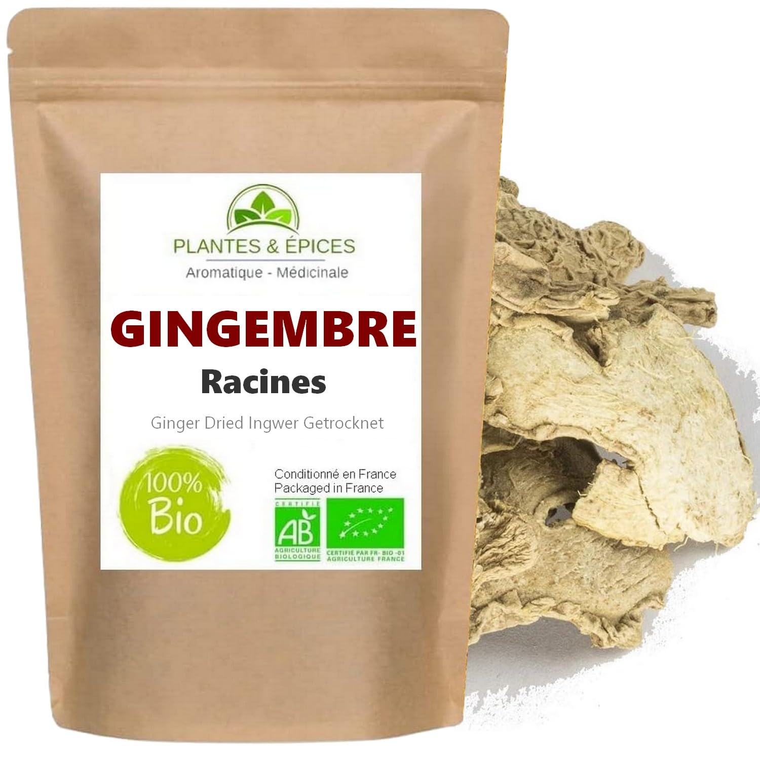 Using Ginger in Cooking: Ginger is found in a wide variety of cuisines around the world and has many uses. It is mainly consumed fresh, but the ground version is just as potent in terms of aroma! In Asia, it is used absolutely everywhere. For preparing vegetables, shellfish, white meats, salads. It is present in almost all Thai spice pastes and is often enjoyed with dried fruit. In Europe, it has found its place and is even used in gingerbread. It works wonders in tea blends like Zanzibar tea or in our homemade Mango Pineapple Smoothie recipe. Useful even in desserts, it will enhance your cookies. It is found in many spice blends, such as Madras curry, tandoori spice mix, and even our traditional mulled wine mix.In a resealable bag: a food-grade, opaque, resealable zip-lock bag for optimal aroma preservation, prepared especially for you on the day your order is shipped. MADE IN FRANCE: Selected product, packaged in our workshop for each order to preserve all its freshness and aroma. PAIRING: With other spices or on fish, also perfect for all your pastries. CUISINE TYPE: Exotic cuisine, desserts, sweet and savory dishes, Thai cuisine. AROMA: A unique aroma, both spicy and sweet. PREPARATION: Add to spice blends or sprinkle over dishes. COOKING: Withstands cooking quite well. Bag of dried whole ginger roots. A universally recognized, fresh, and powerful flavor, equally suitable for savory and sweet dishes!Utilisation du gingembre en cuisine Le gingembre se retrouve dans un grand nombre de cuisines au travers le monde et ses utilisations sont multiples. Il se consomme essentiellement frais, mais la version moulue n'a pas à rougir en termes de puissance aromatique ! En Asie, on l'utilise absolument partout. Pour la préparation de légumes, crustacés, viandes blanches, salades. Il est présent dans presque toutes les pâtes d'épices thaïes et on le consomme volontiers avec des fruits secs. En Europe, il a trouvé sa place et on l'utilise jusque dans le pain d'épices. Il fait merveille dans les mélanges de thé comme le thé Zanzibar ou encore dans notre recette maison de Smoothie mangue ananas. Utile jusqu'au dessert, il saura sublimer vos cookies. On le retrouve dans bon nombre de mélanges d'épices, comme le curry de Madras, le mélange tandoori et même notre traditionnel mélange pour vin chaud.En sachet refermable : un paquet de qualité alimentaire, opaque et refermable hermétiquement par zip, pour une conservation optimale des arômes dans la durée, préparé spécialement pour vous le jour de l'expédition de votre commande. ATELIER EN FRANCE : Produit sélectionné, conditionné dans notre atelier à chaque commande pour conserver toute la fraicheur et les arômes. ASSOCIATION Avec d'autres épices ou sur des poissons, parfait aussi pour toutes vos patisseries. TYPE DE CUISINE Cuisine exotique, cuisine des desserts, cuisine sucrée-salée, cuisine Thaï. ARÔME Un arôme unique, piquant et suave à la fois. PRÉPARATION A rajouter pour des mélanges d'épices ou à saupoudrer sur les plats. CUISSON Supporte assez bien la cuisson. Sachet de gingembre en racines entières séchées. Une saveur connue de tous, fraîche et puissante, aussi valable dans la cuisine salée que sucrée !.Gingembre en racines séchées Naturel100g - Sachet Fraîcheur Hermétique Refermable (100g)