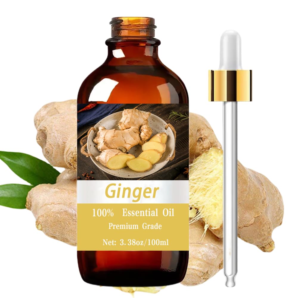 THOUGHTFUL GIFT: Makes an excellent present for both men and women, perfect for birthdays, Christmas, or special occasions. NATURAL BENEFITS: Features the authentic essence of ginger root, known for its warming and comforting aromatic properties. DIFFUSER FRIENDLY: Ideal for use in diffusers and humidifiers to disperse the warm, invigorating aroma throughout your space. VERSATILE USES: Perfect for aromatherapy, massage therapy, skin moisturizing, hair care, and nail care applications when properly diluted. PREMIUM GRADE: 100 pure ginger essential oil in a generous 3.38 fl oz (100ml) amber glass bottle for maximum freshness and potency.