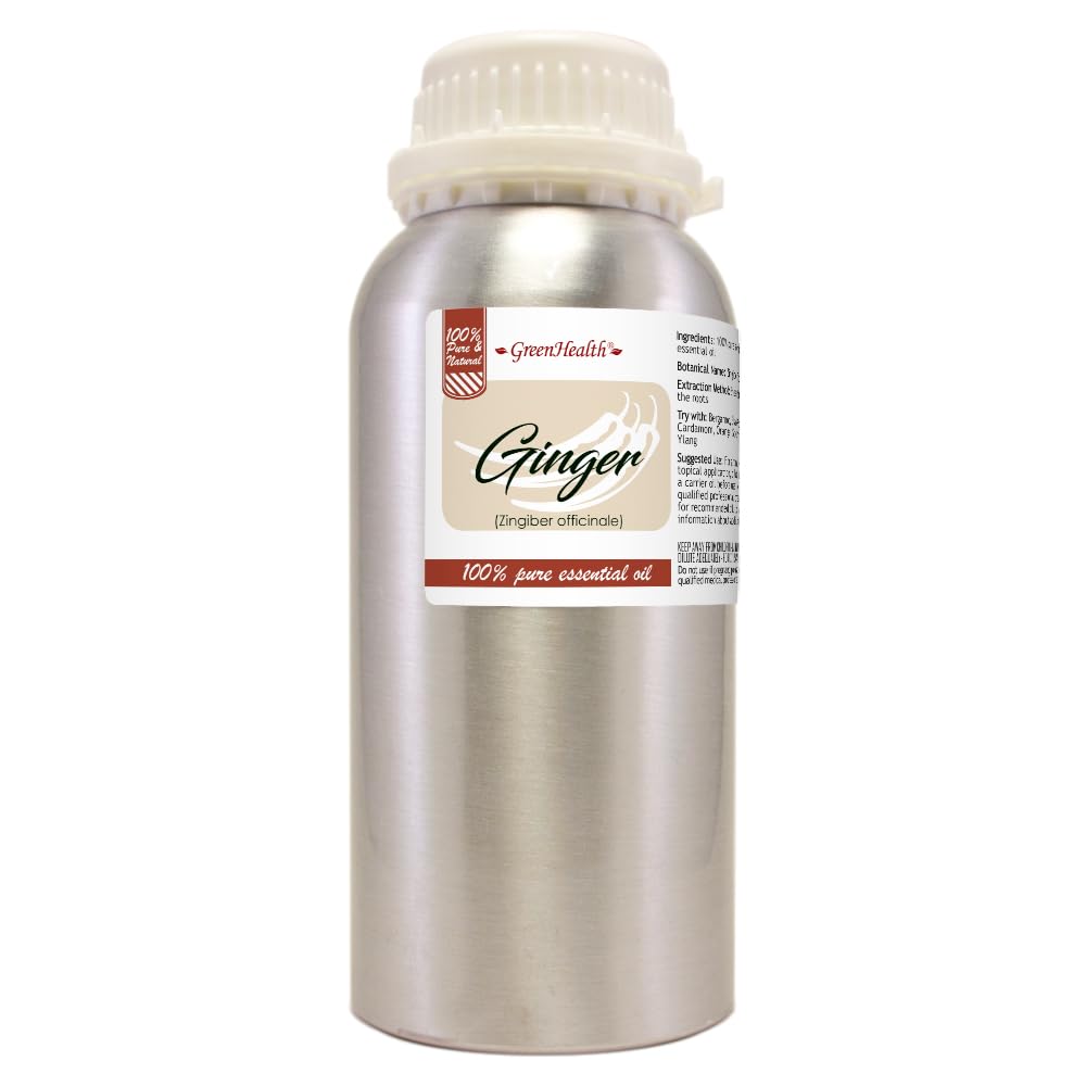 Ginger Essential Oil 16 fl oz (473 ml) Aluminum Bottle w/Plug Cap 100% Pure Essential Oil GreenHealth