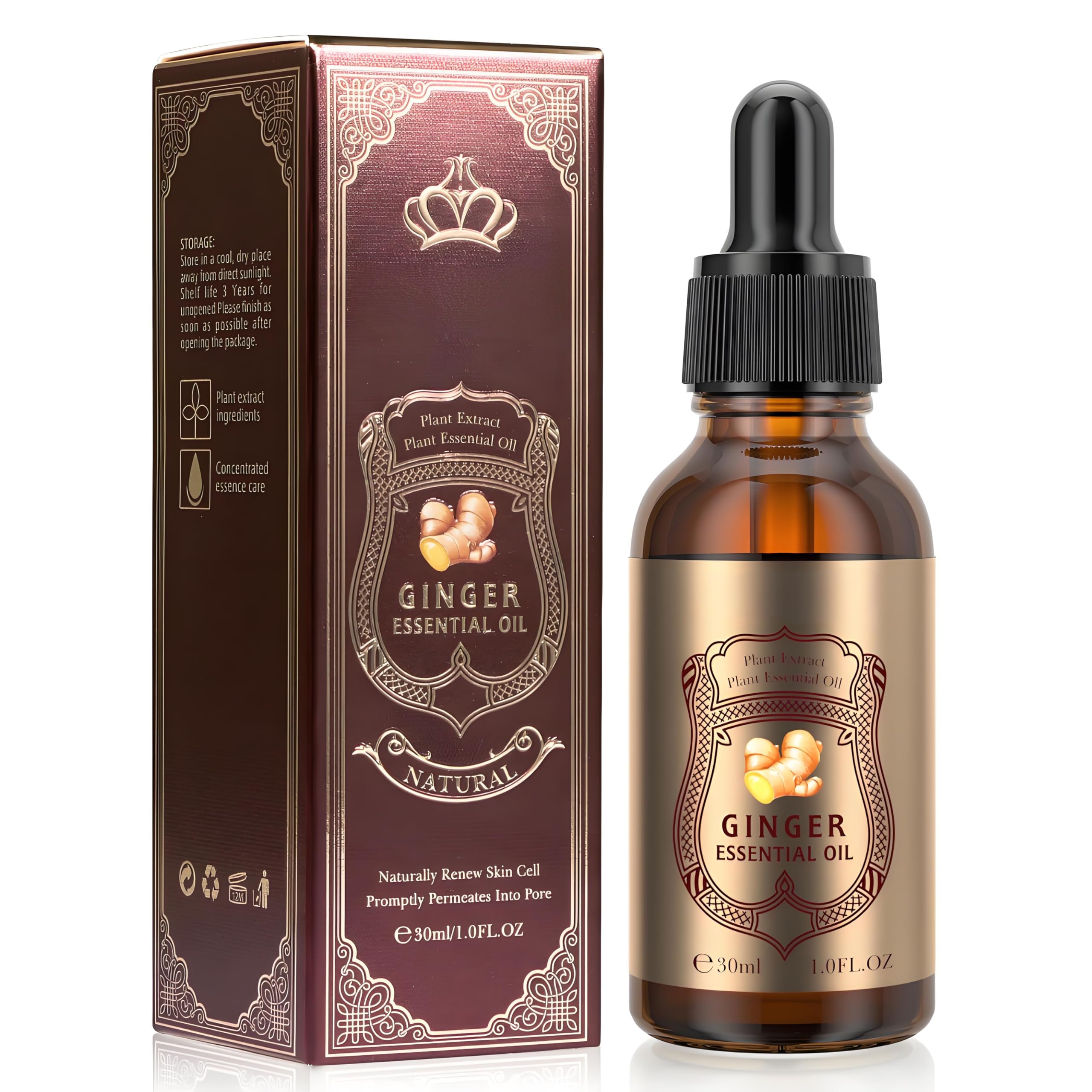 Ginger Essential Oil 30ml Natural Plant Extract for Skin Renewal Aromatherapy Massage & Hot Compress Therapy