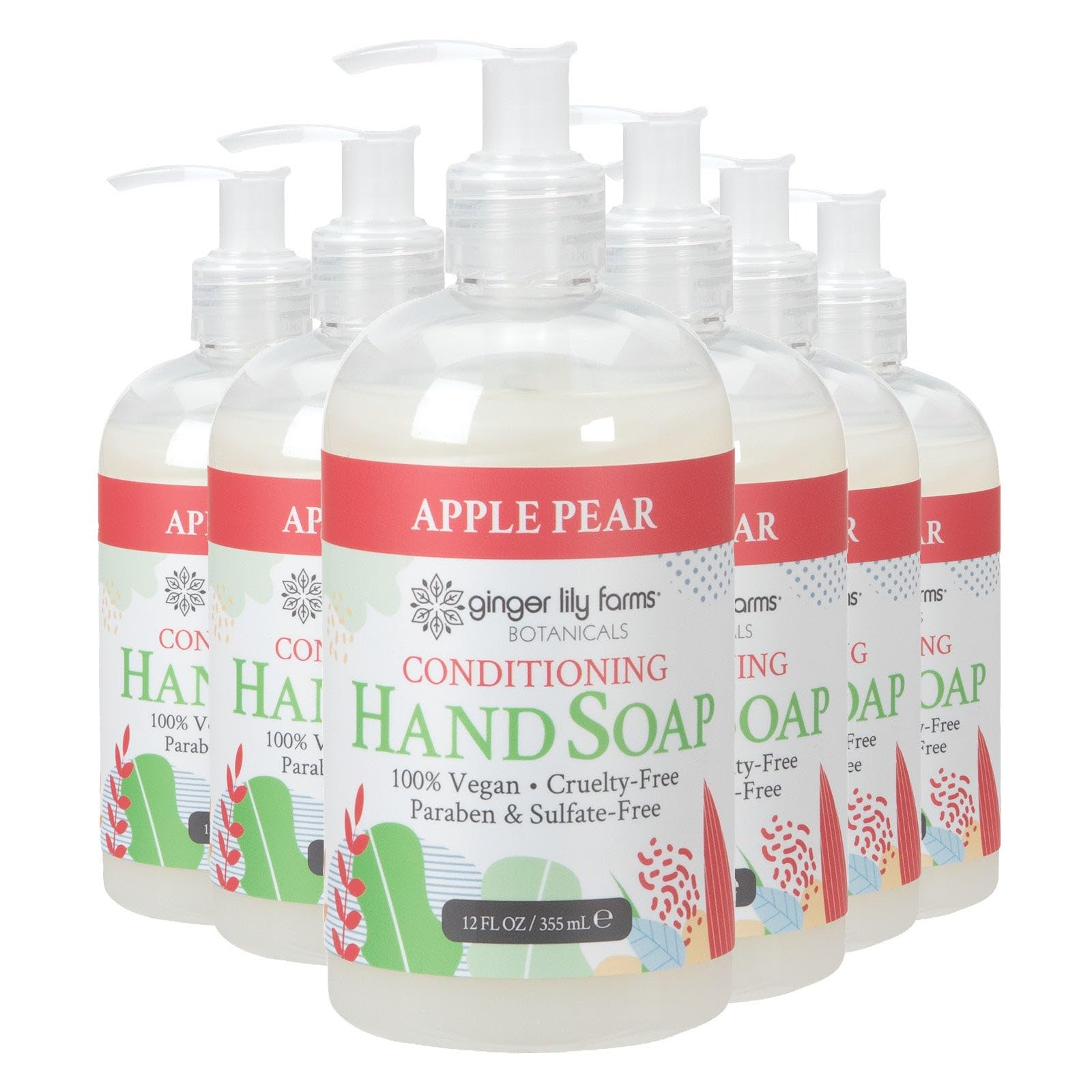 Ginger Lily Farms Botanicals Conditioning Liquid Hand Soap Refill 100% Vegan & Cruelty-Free Apple Pear Scent 12 Fl Oz (Pack of 6)