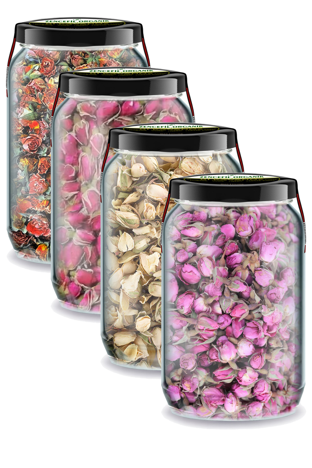 Ginger Organic 4 Types of Bud Rose Dried Pink White Red Orange Color Rose Jar 660 cc. x4 Glass Jar