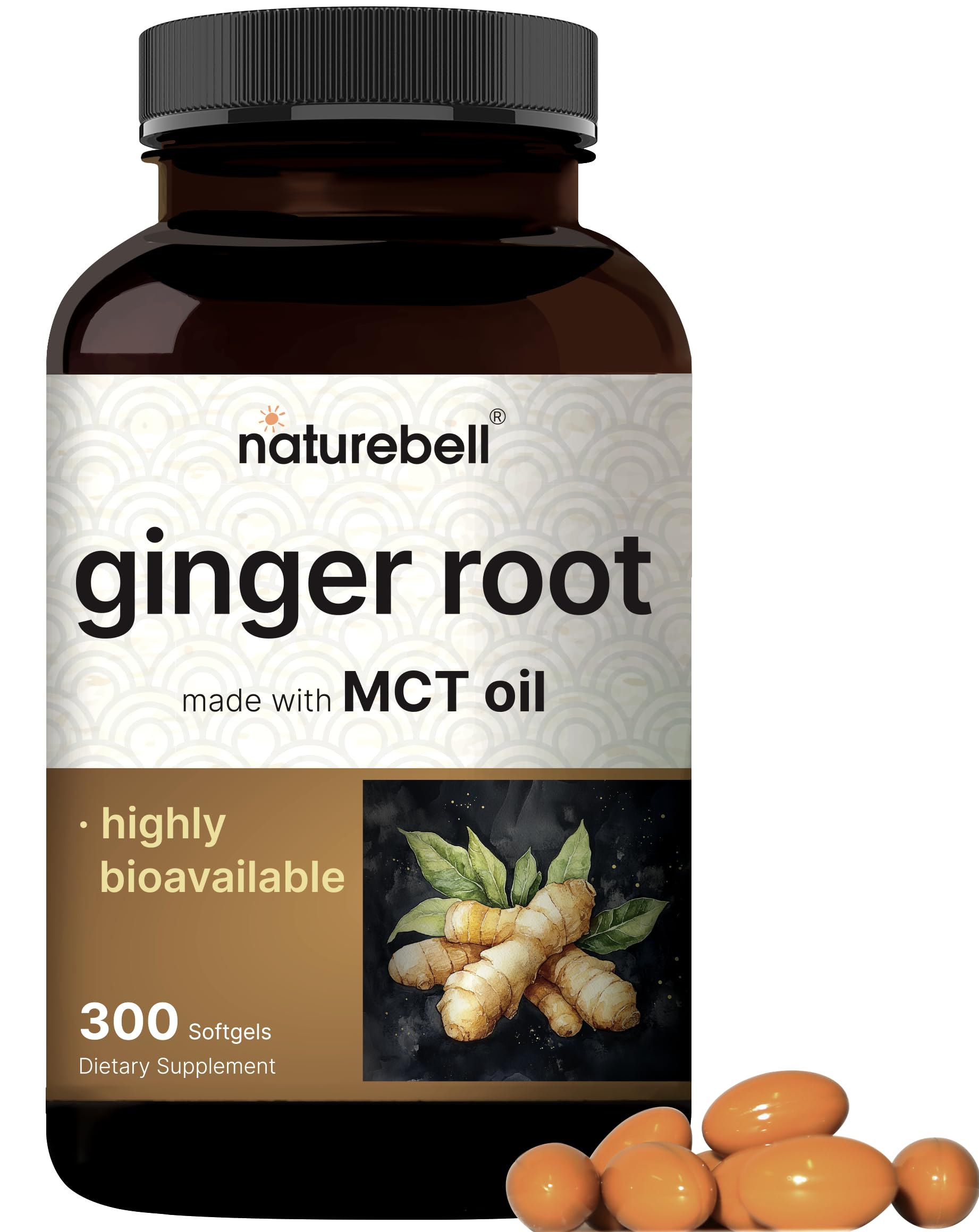Authentic non-GMO ginger supplement. Contains pure ingredients free of wheat, soy, dairy, gluten, and eggs. All products are 3rd party lab tested for safety and potency. Contains natural gingerol compounds and offers additional support for joint comfort and immune wellness thanks to its powerful antioxidant profile. A natural herbal supplement traditionally used to support daily digestion for an upset stomach, ease occasional bloating, and promote comfort during travel when motion sickness occurs. 300 softgels per bottle with a 2-softgel serving size, providing a 150-day supply of potent herbal support for convenient long-lasting use. Max strength ginger root softgel formula that features a highly concentrated 20:1 root extract of traditional Zingiber Officinale, equivalent to a 6,000mg serving, and infused with MCT oil from coconut for efficient absorption.