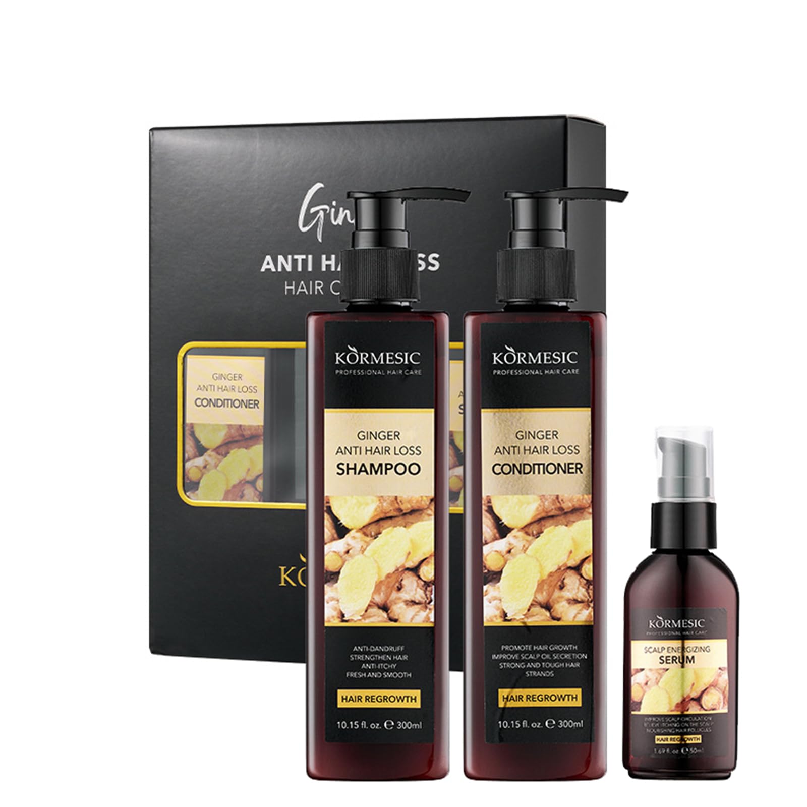 PRODUCT NAME Ginger Anti Hair Loss Hair Care Set MAIN EFFICACY Gently cleanses hair dirt, fresh and clean, strengthens hair roots, anti hair loss, helps improve dry, rough, split ends and lackluster hair, making hair silky, smooth, shiny, light, fluffy and not flat Features: Ginger Anti Hair Loss Shampoo 300ml Ginger Anti Hair Loss Conditioner 300ml Hair Scalp Serum 50mlPerfect for all hair types: It can be used for any type of color-treated hair, whether it's long, blonde, African, afro-kinky, or brunette. Strengthening conditioner: Transforms limp, dry hair into full, rich, and voluminous locks. Ginger root extract along with our added natural oils help create a deep conditioner for dry, damaged hair, and it's an excellent hair moisturizer. Gentle cleansing: Enjoy a gentle cleansing experience with our ginger shampoo, perfect for daily use. It effectively removes impurities and excess oil, leaving your hair and scalp clean, refreshed, and manageable. Natural and gentle formula: Our hair care set is infused with natural ginger root extracts. Our formula strengthens, softens, and adds shine to hair without causing damage. It penetrates deep into the hair, strengthening the roots, and leaving hair strong and soft. Shampoo, conditioner and serum: Ginger hair care products have a nourishing effect on hair, bringing a luxurious touch to your daily routine, adding shine and softness, while strengthening hair elasticity. NOM DU PRODUIT Ensemble de soins capillaires anti-chute au gingembre EFFICACITÉ PRINCIPALE Nettoie en douceur la saleté des cheveux, frais et propres, renforce les racines des cheveux, anti-chute de cheveux, aide à améliorer les cheveux secs, rugueux, fourchus et sans lustre, rendant les cheveux soyeux, lisses, brillants, légers, moelleux et non plats Caractéristiques : Shampooing anti-chute au gingembre 300 ml Après-shampoing anti-chute au gingembre 300 ml Sérum capillaire pour cuir chevelu 50 mlParfait pour tous les types de cheveux : il peut être utilisé pour tout type de cheveux colorés, cheveux allongés, blonds, africains, afro crépus ou bruns. Après-shampoing fortifiant : transforme les cheveux mous et secs en mèches pleines, riches et volumineuses. L'extrait de racine de gingembre ainsi que nos huiles naturelles ajoutées aident à créer un après-shampoing profond pour les cheveux secs et abîmés, et c'est un excellent hydratant pour les cheveux. Nettoyage doux : profitez d'une expérience de nettoyage douce avec notre shampooing au gingembre, parfait pour un usage quotidien. Il élimine efficacement les impuretés et l'excès d'huile, laissant vos cheveux et votre cuir chevelu propres, rafraîchis et faciles à coiffer. Formule naturelle et douce : notre ensemble de soins capillaires infusé avec des extraits naturels de racine de gingembre, notre formule renforce, adoucit et fait briller les cheveux sans causer de dommages. Il pénètre profondément les cheveux, fortifie les racines et laisse les cheveux forts et doux. Shampoing, après-shampoing et sérum : les produits de soins capillaires au gingembre ont un effet nourrissant sur les cheveux, apportent une touche luxueuse à votre routine quotidienne, ajoutant brillance et douceur, tout en renforçant l'élasticité des cheveux.
